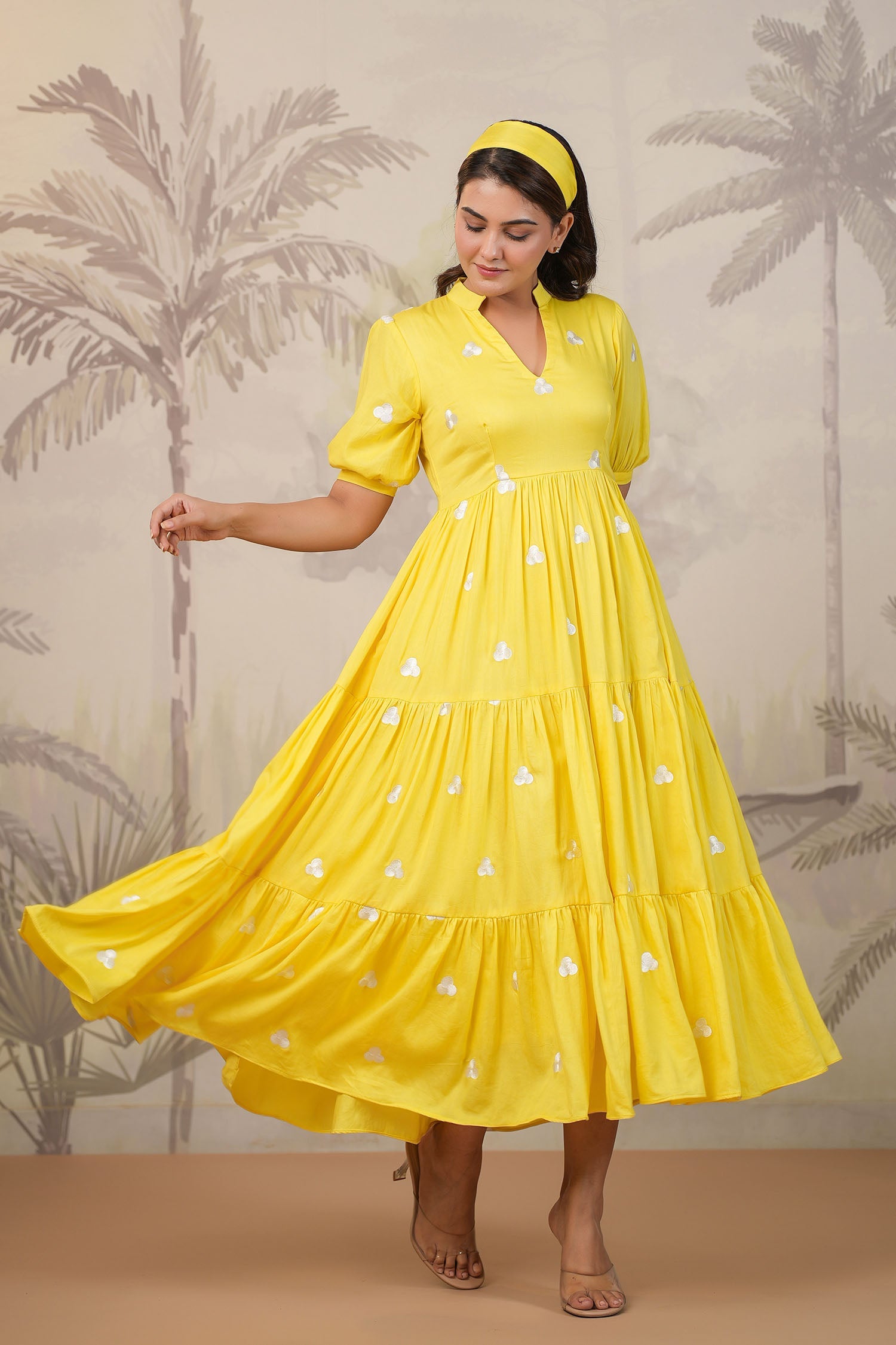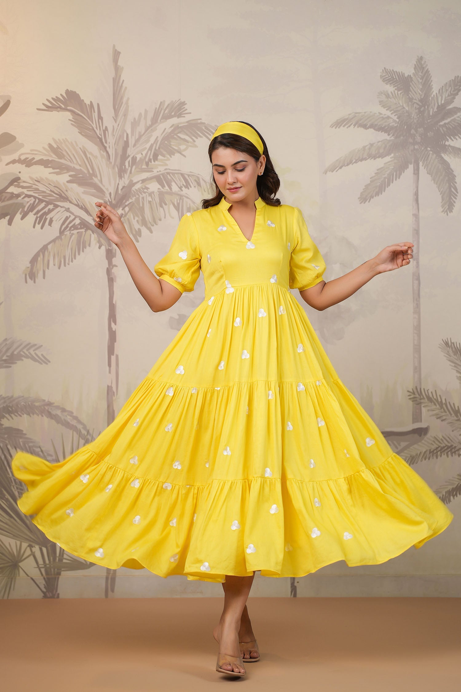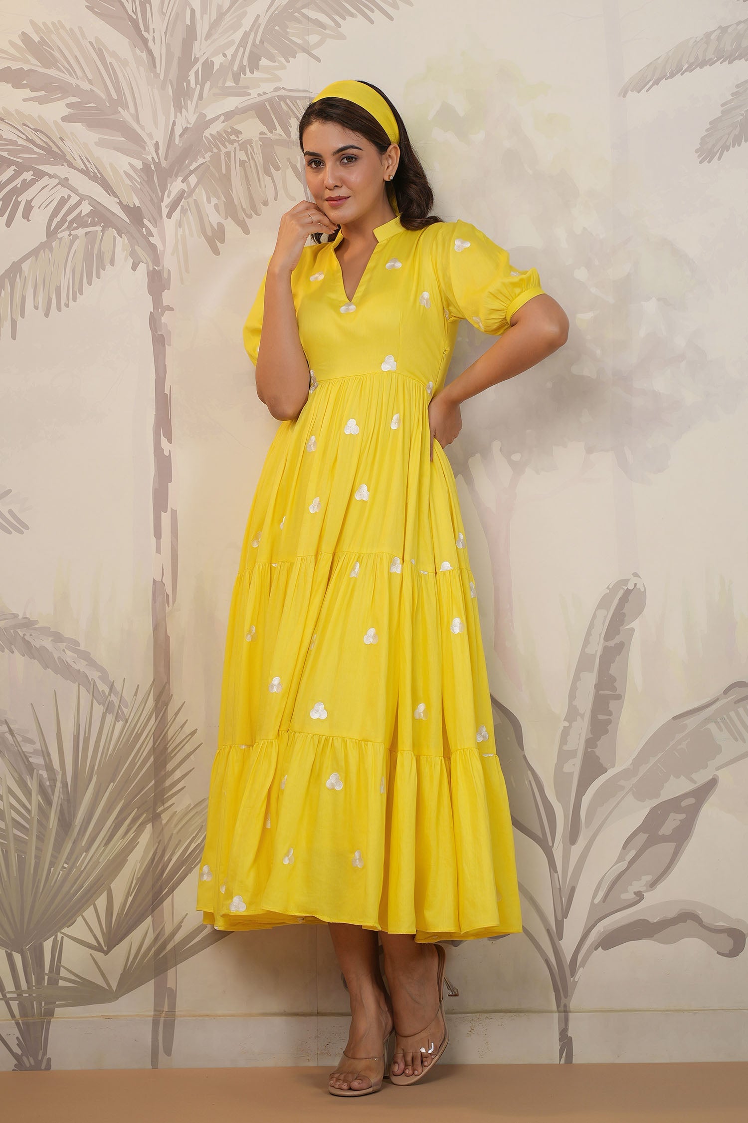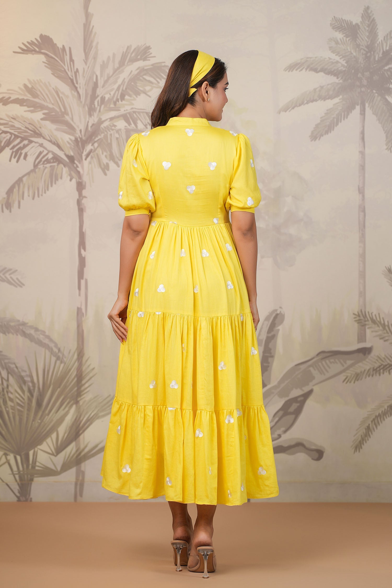 Bright Yellow Santoon Embroidered Dress