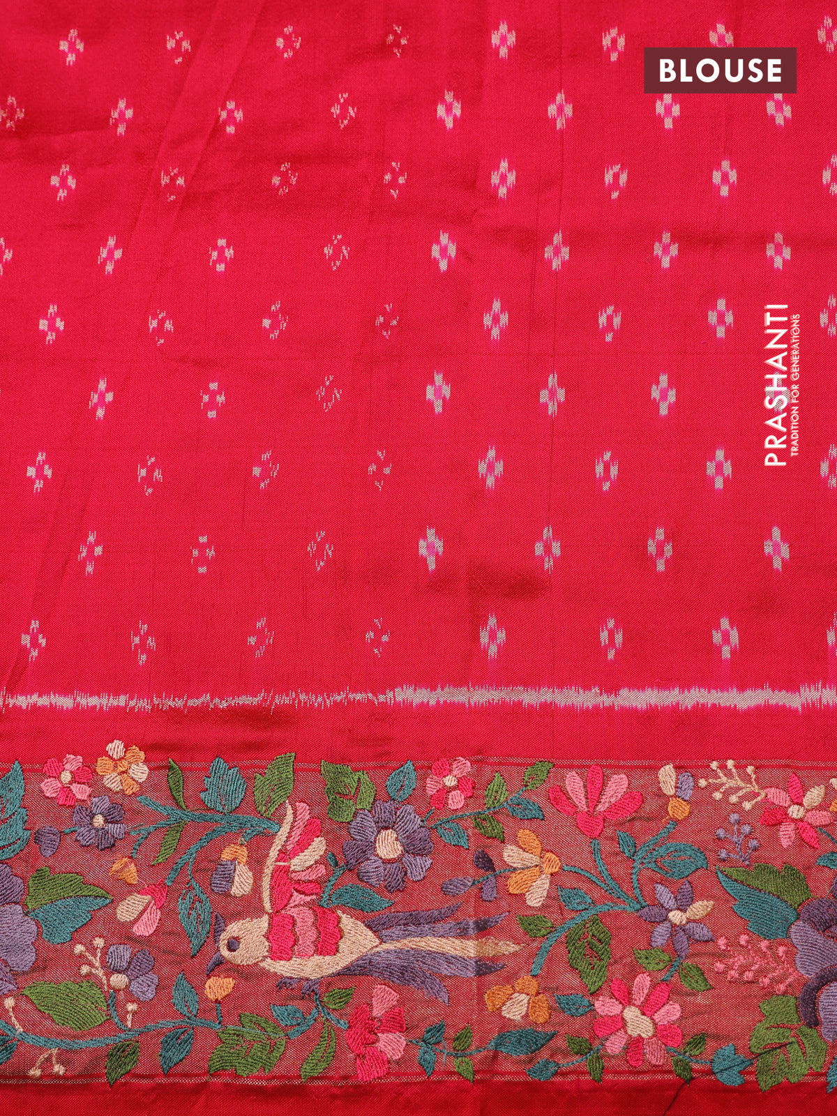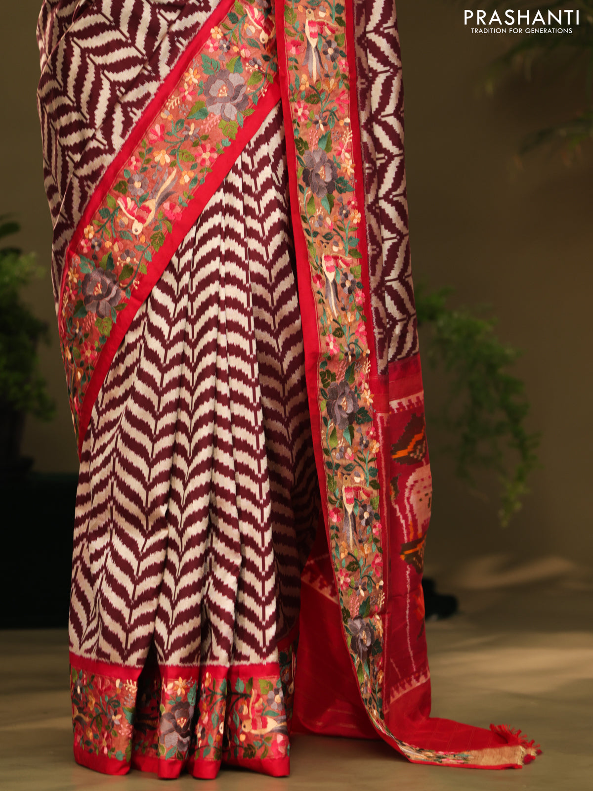 Brown & Pink Pochampally Silk saree with Border Embroidery & pichwai pallu