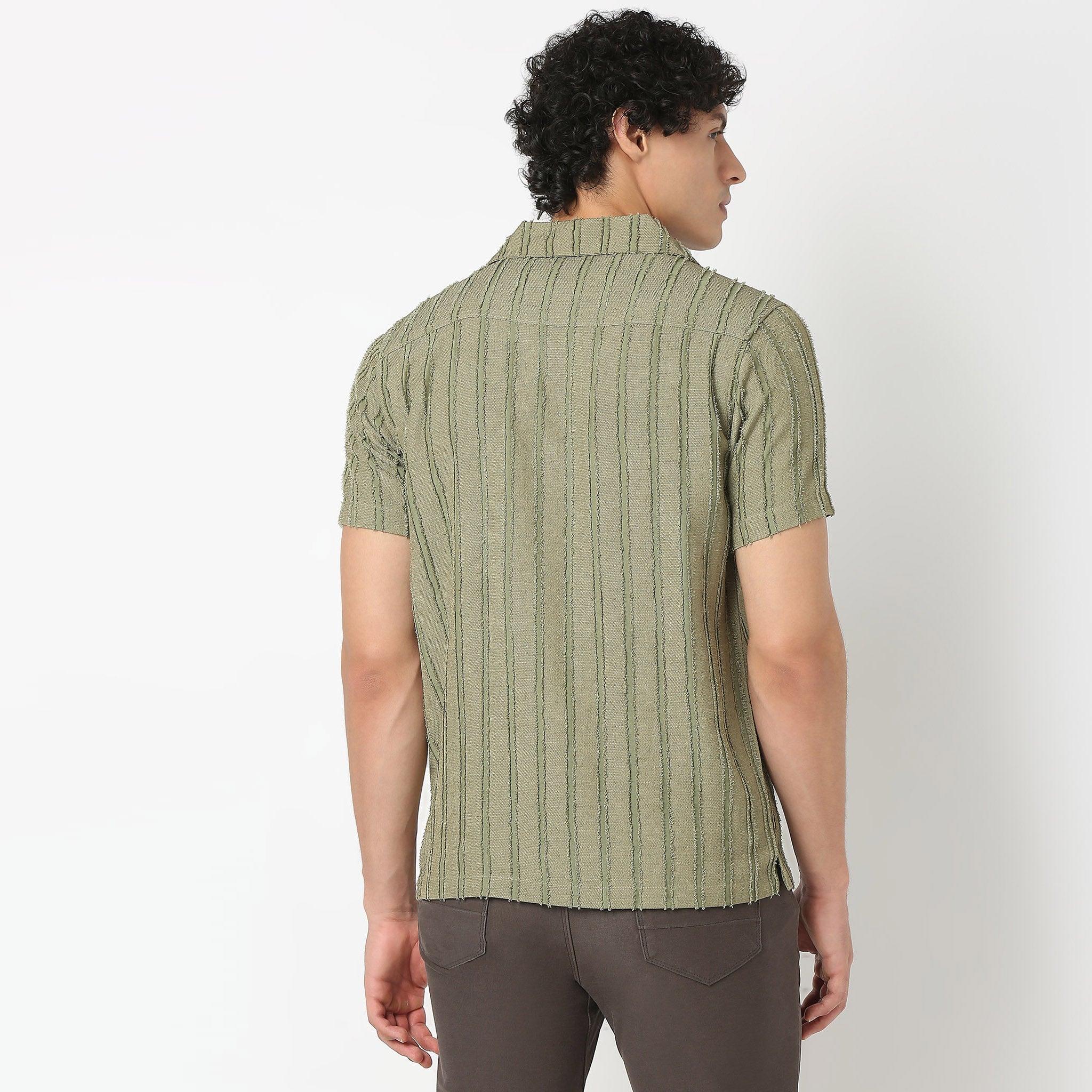 Experience the perfect blend of comfort and style with our Camp Collar Structured Shirt. Crafted from 100% polyester, this shirt offers a lightweight and breathable feel, making it ideal for any occasion. The structured pattern and woven texture add a touch of sophistication, while the camp collar and half sleeves provide a relaxed yet polished look. Whether you're heading to a casual outing or a laid-back office day, this shirt ensures you stay stylish and comfortable throughout.