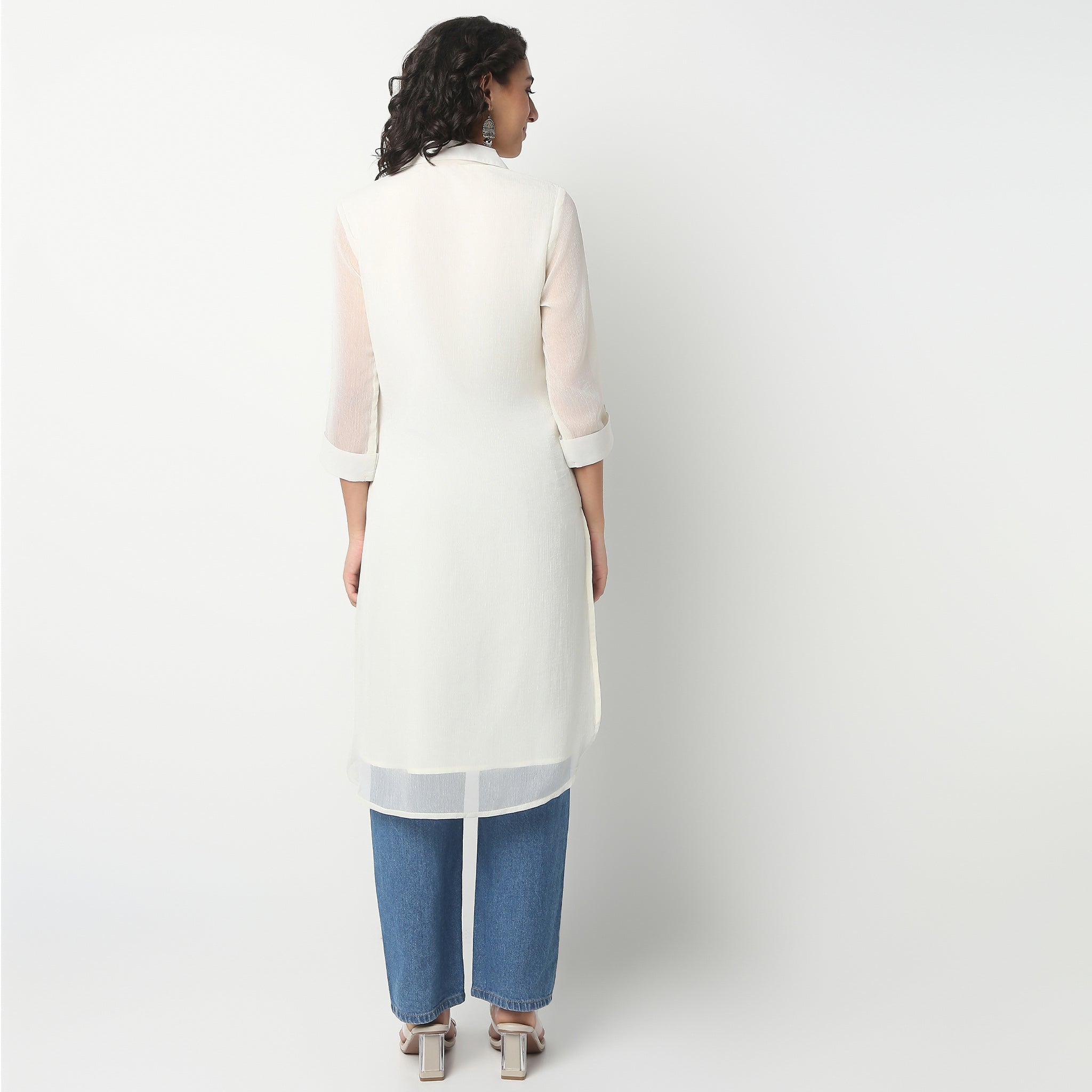 Camp Collar Knee Length Three-Fourth Sleeve Straight Fit Printed Kurta