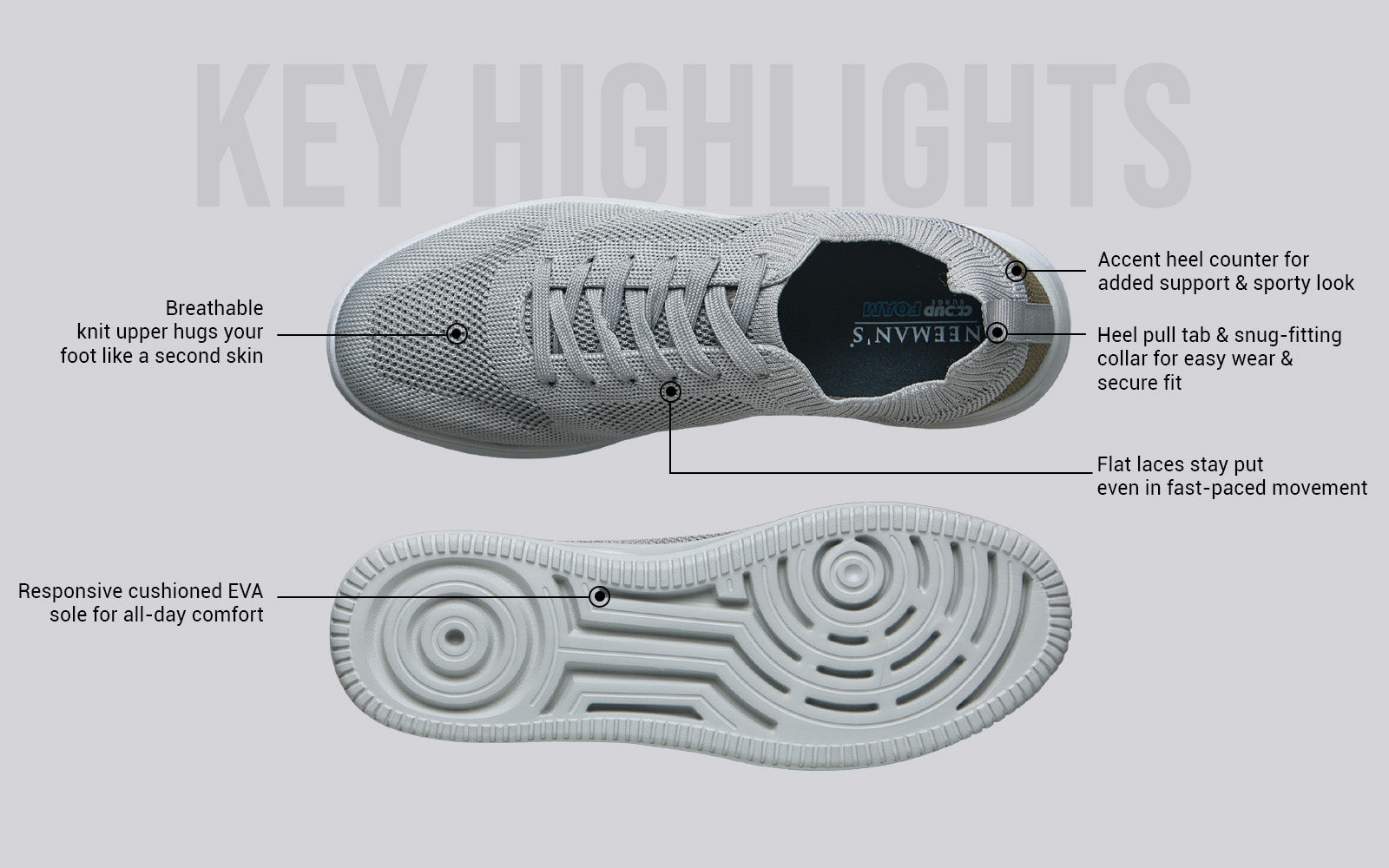 Court-inspired style with city-ready comfort! That’s the Casual Court Sneakers for you. A breathable knit that keeps your feet fresh, while a responsive cushioned sole keeps your feet from tiring. To top it off, we added an accent heel counter for support and to give it a subtle elevated fashion edge.
