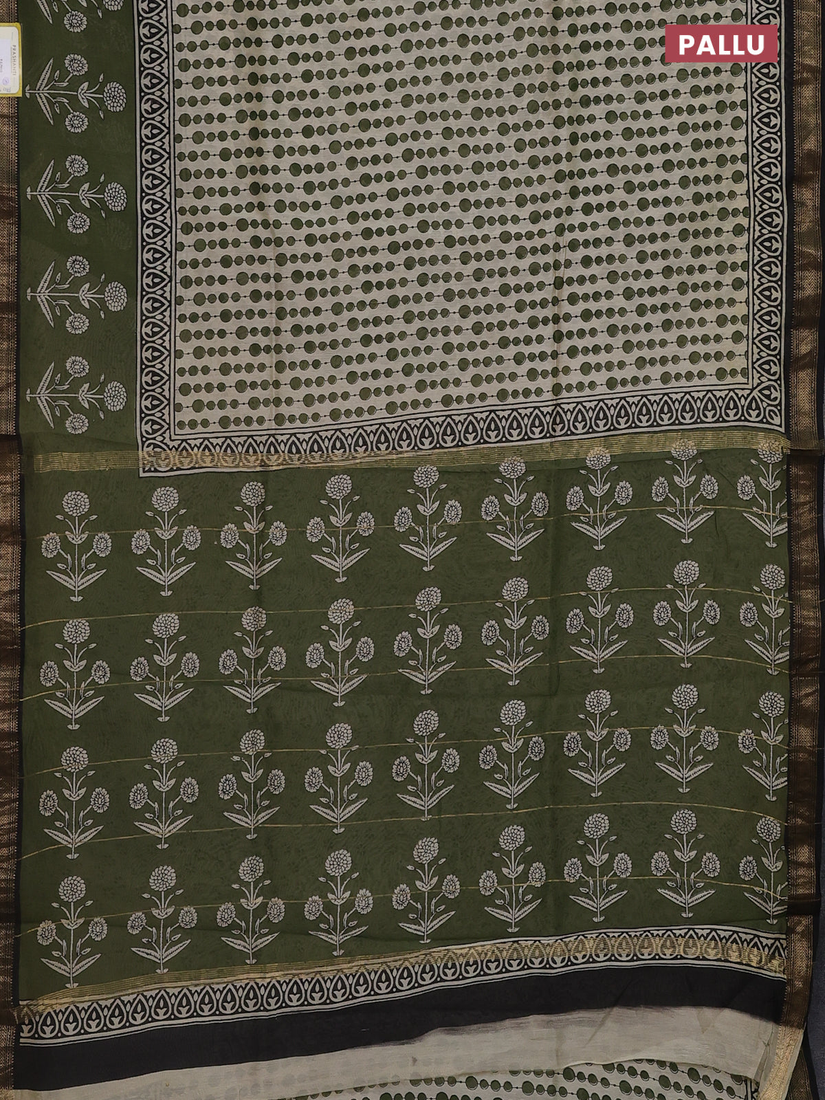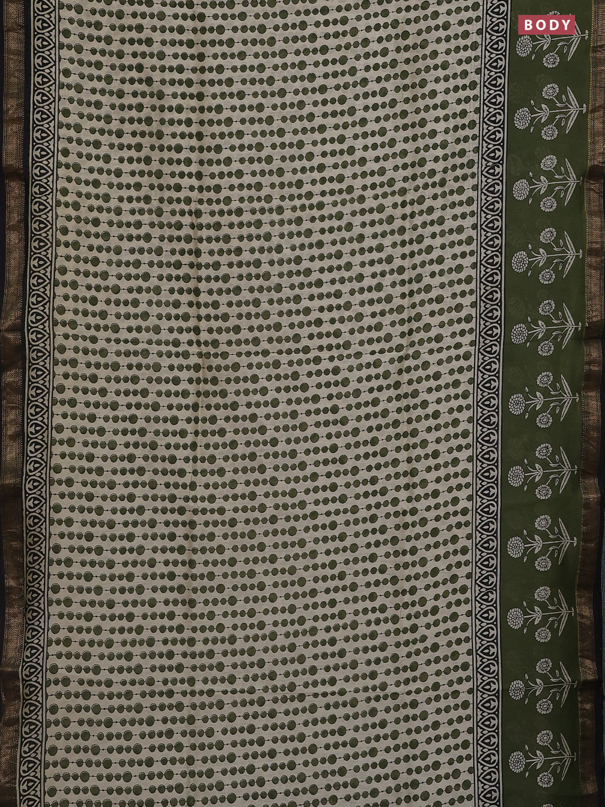 Chanderi bagru saree cream sap green and black with allover geometric prints and mageshwari border
