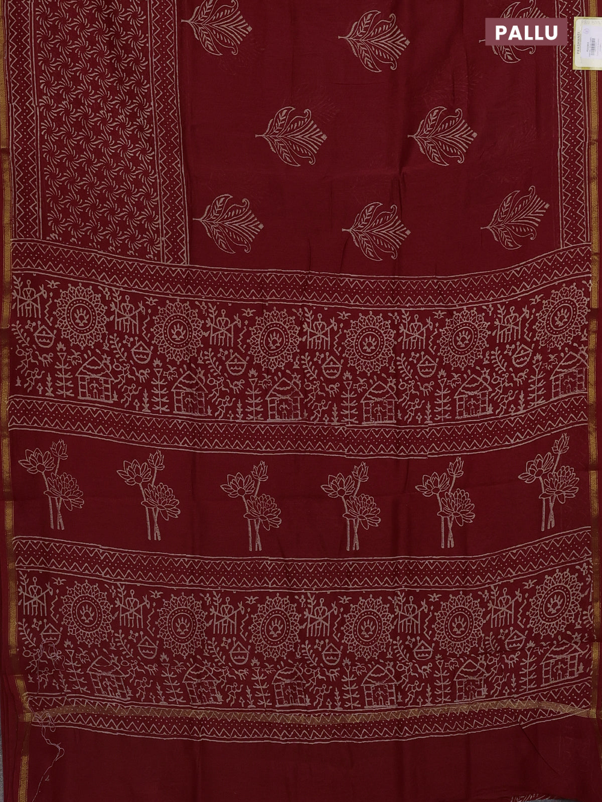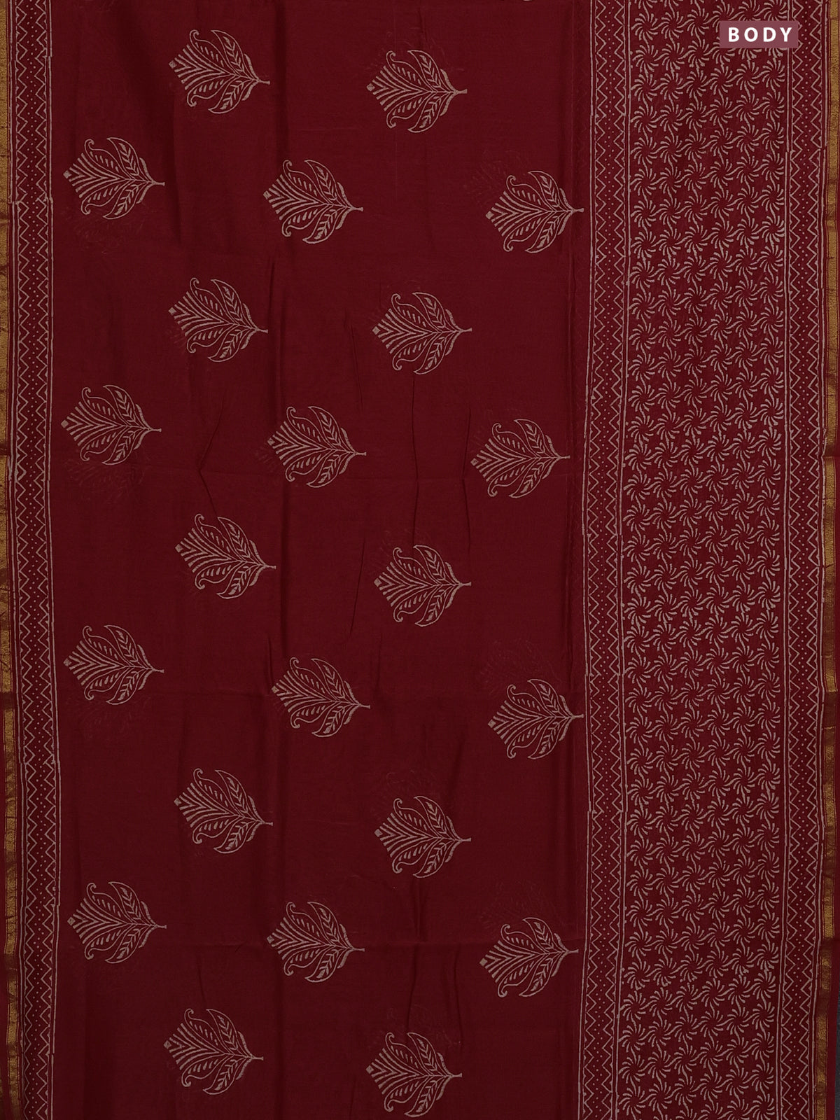 Chanderi bagru saree maroon with butta prints and small zari woven border
