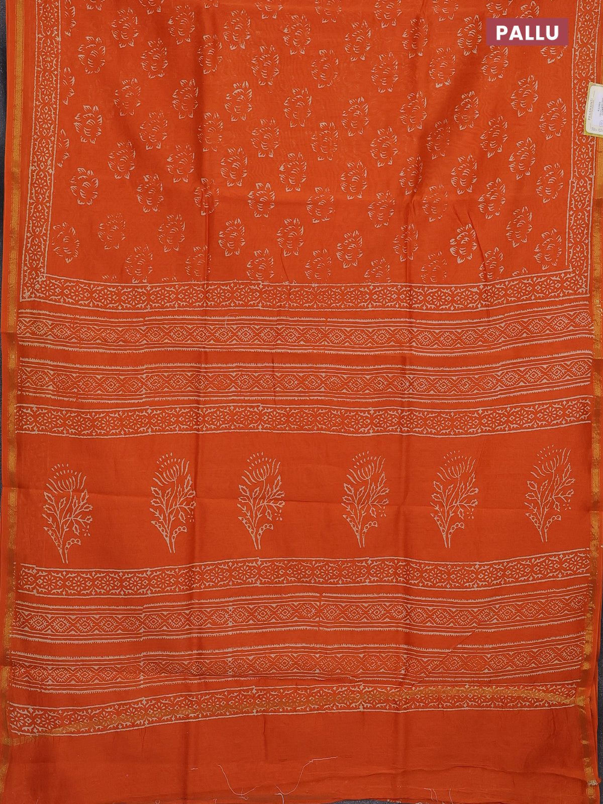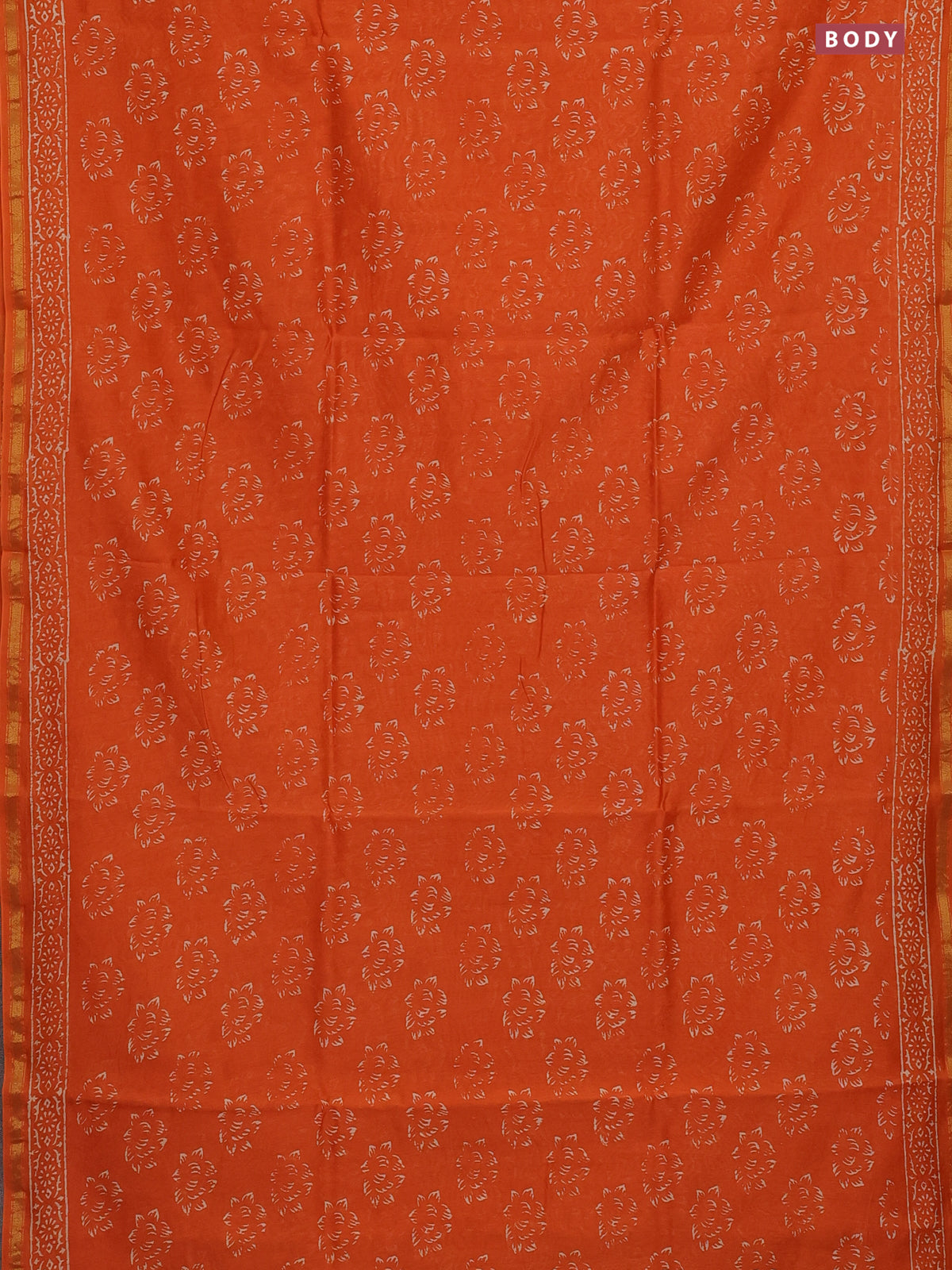 Chanderi bagru saree orange with allover dfloral butta prints and small zari woven border