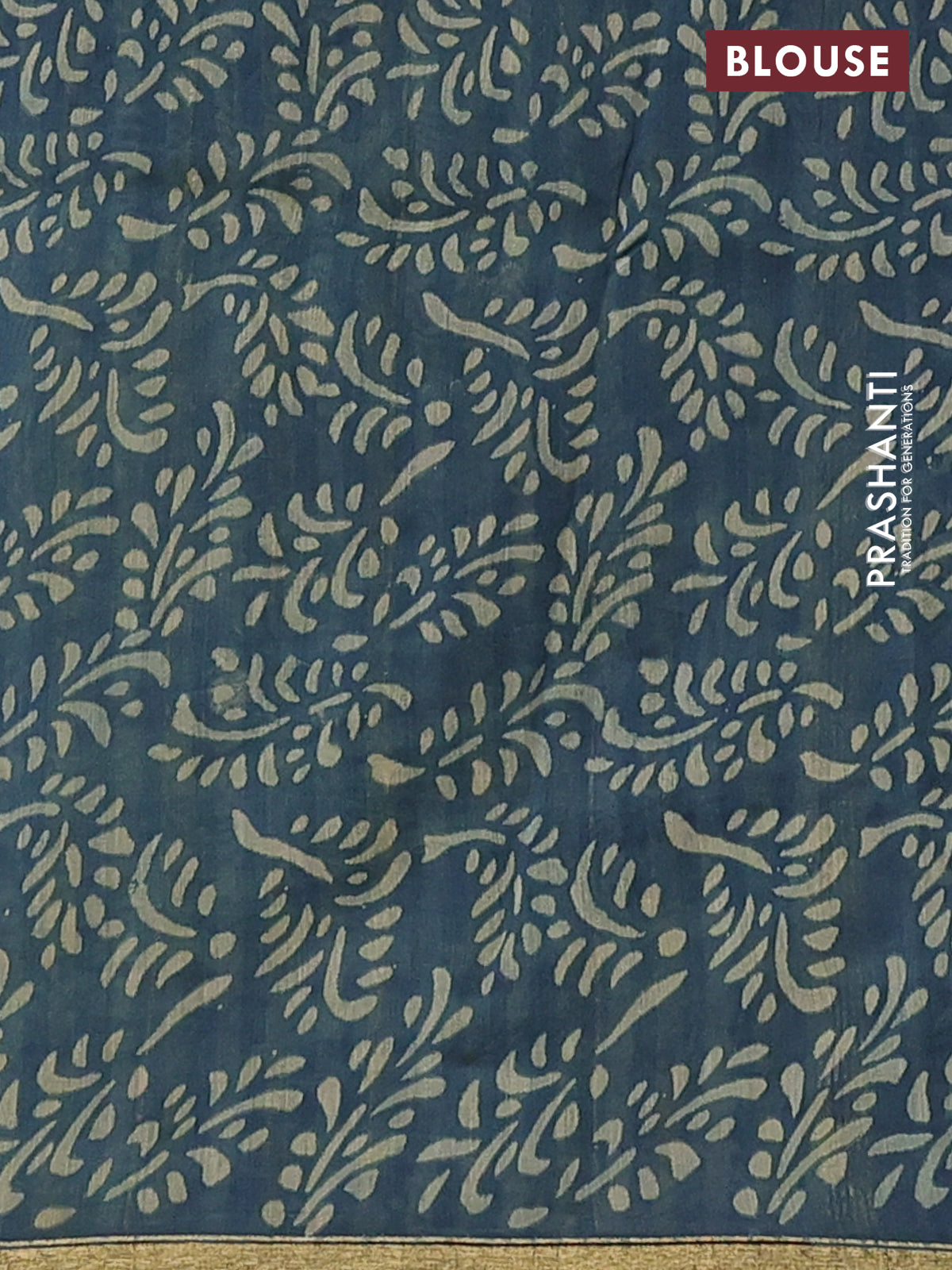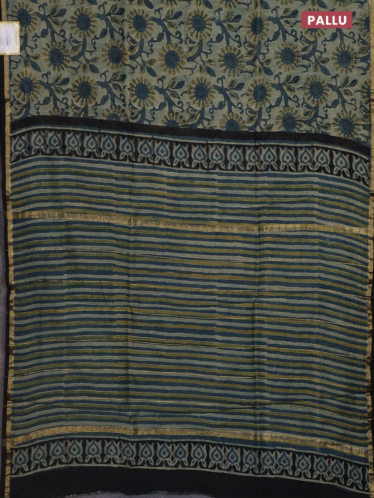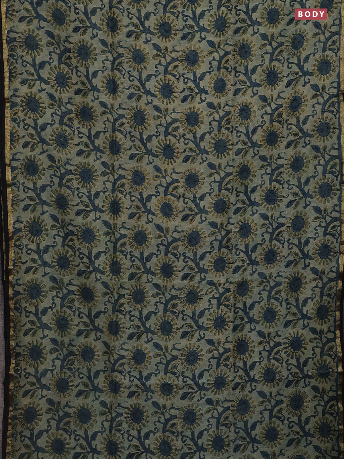 Chanderi bagru saree pastel green and black with allover kalamkari prints and small zari woven border