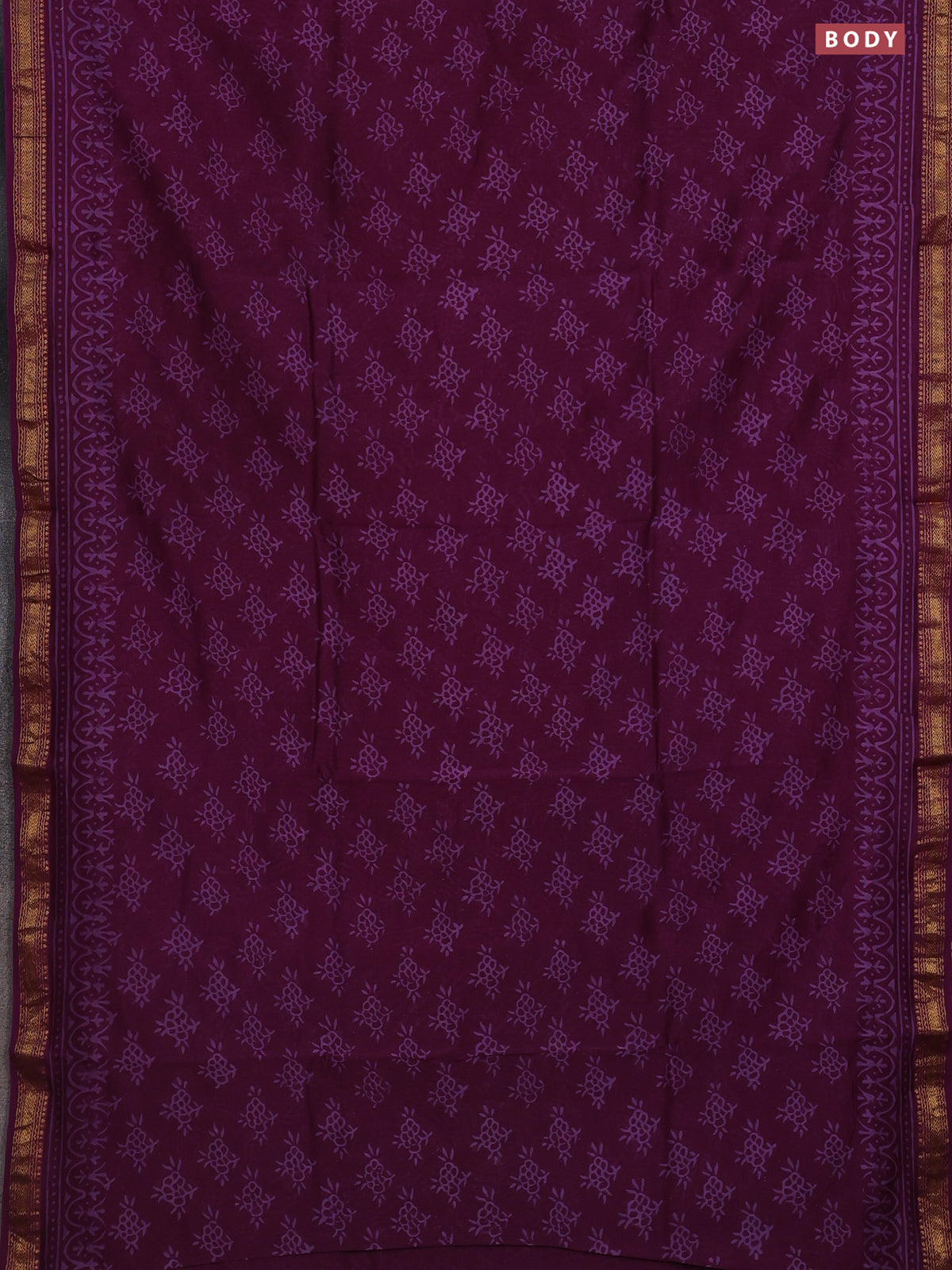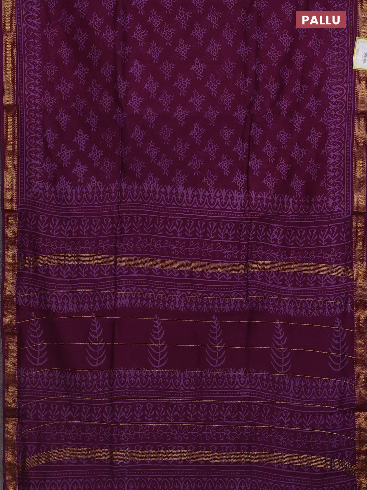 Chanderi bagru saree wine shade with allover butta prints and maheswari border
