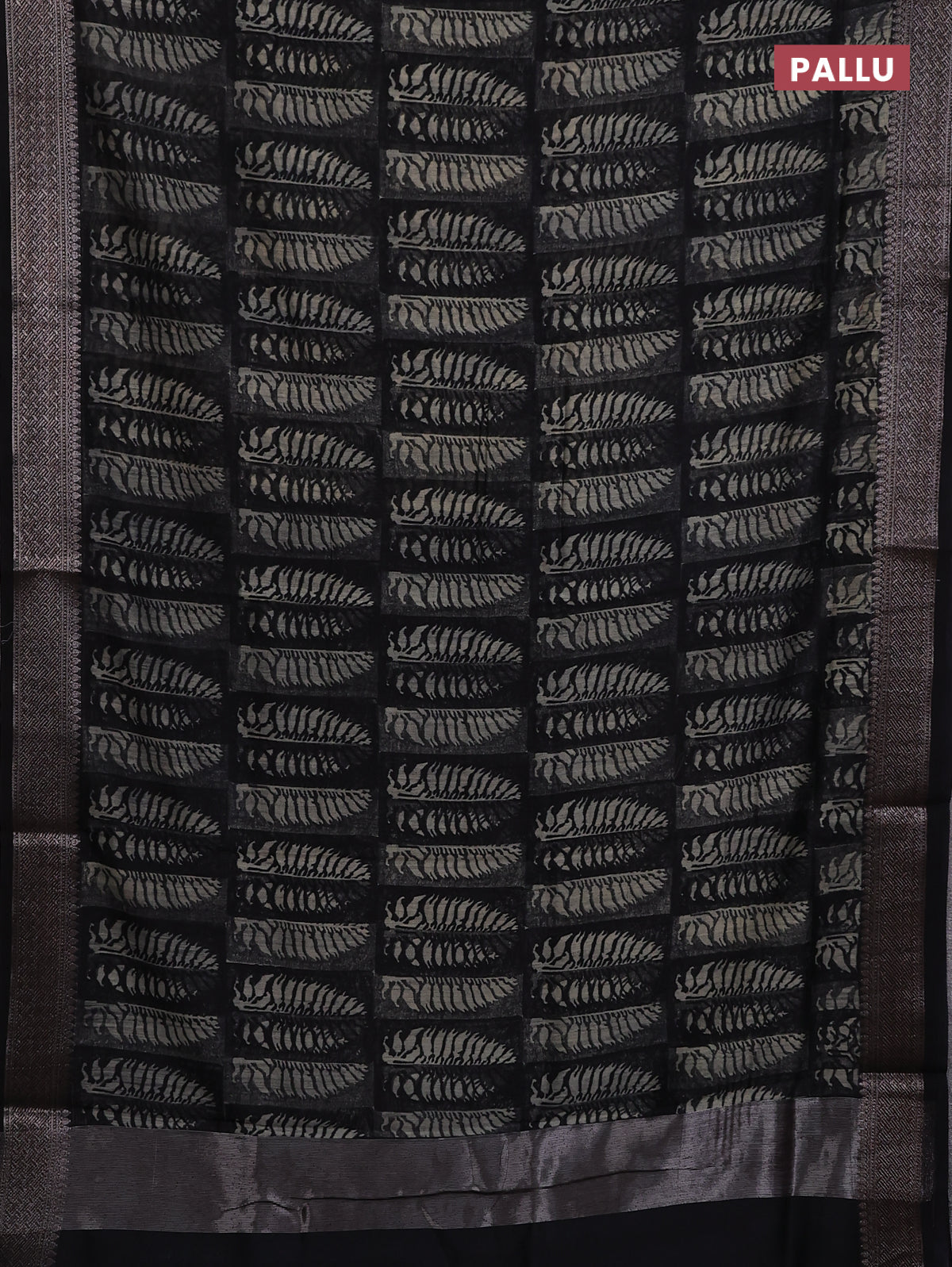 Chanderi silk cotton saree black with allover prints and banarasi style border