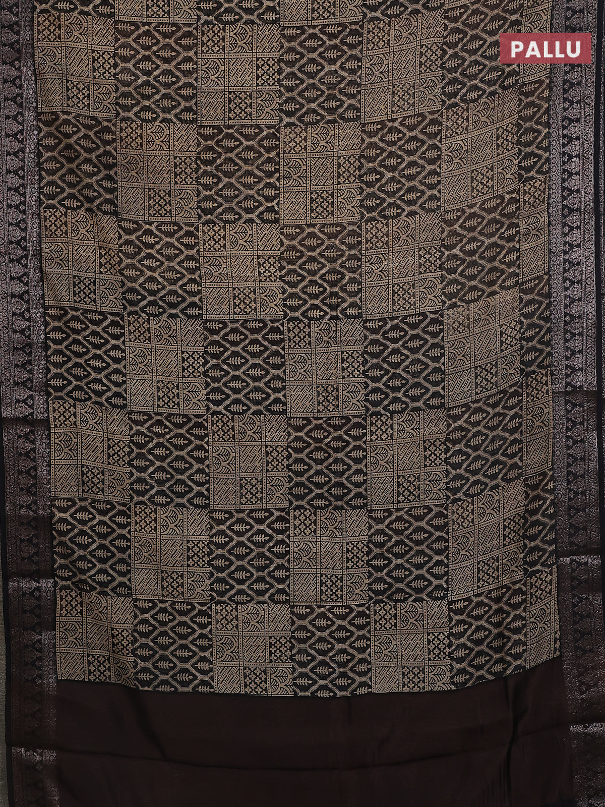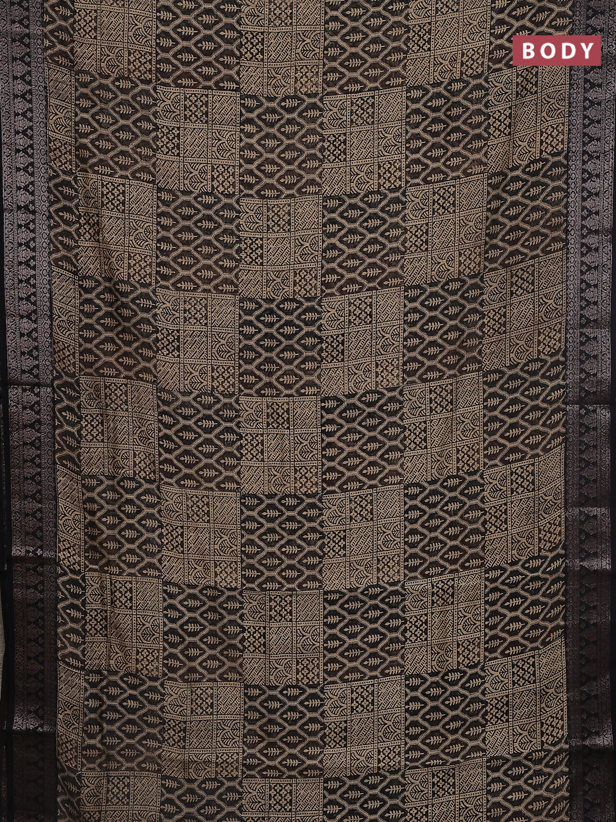 Chanderi silk cotton saree black with allover prints and banarasi style border