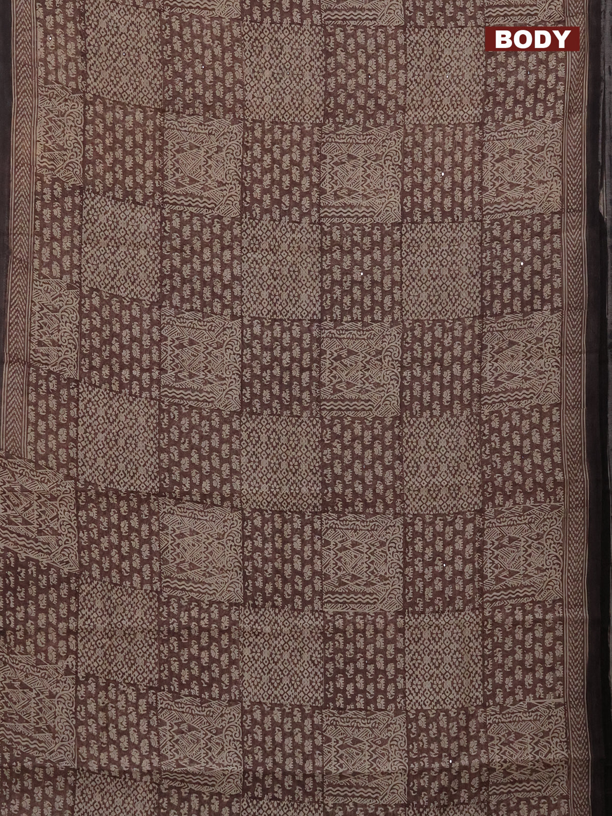 Chanderi silk cotton saree brown and beige with allover prints & mirror work and printed border