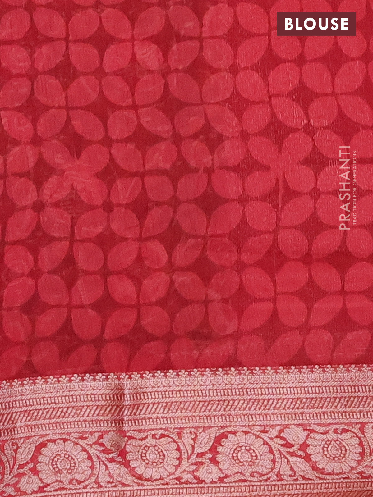 Chanderi silk cotton saree dark green and red with allover kalamkari prints and banarsi style border
