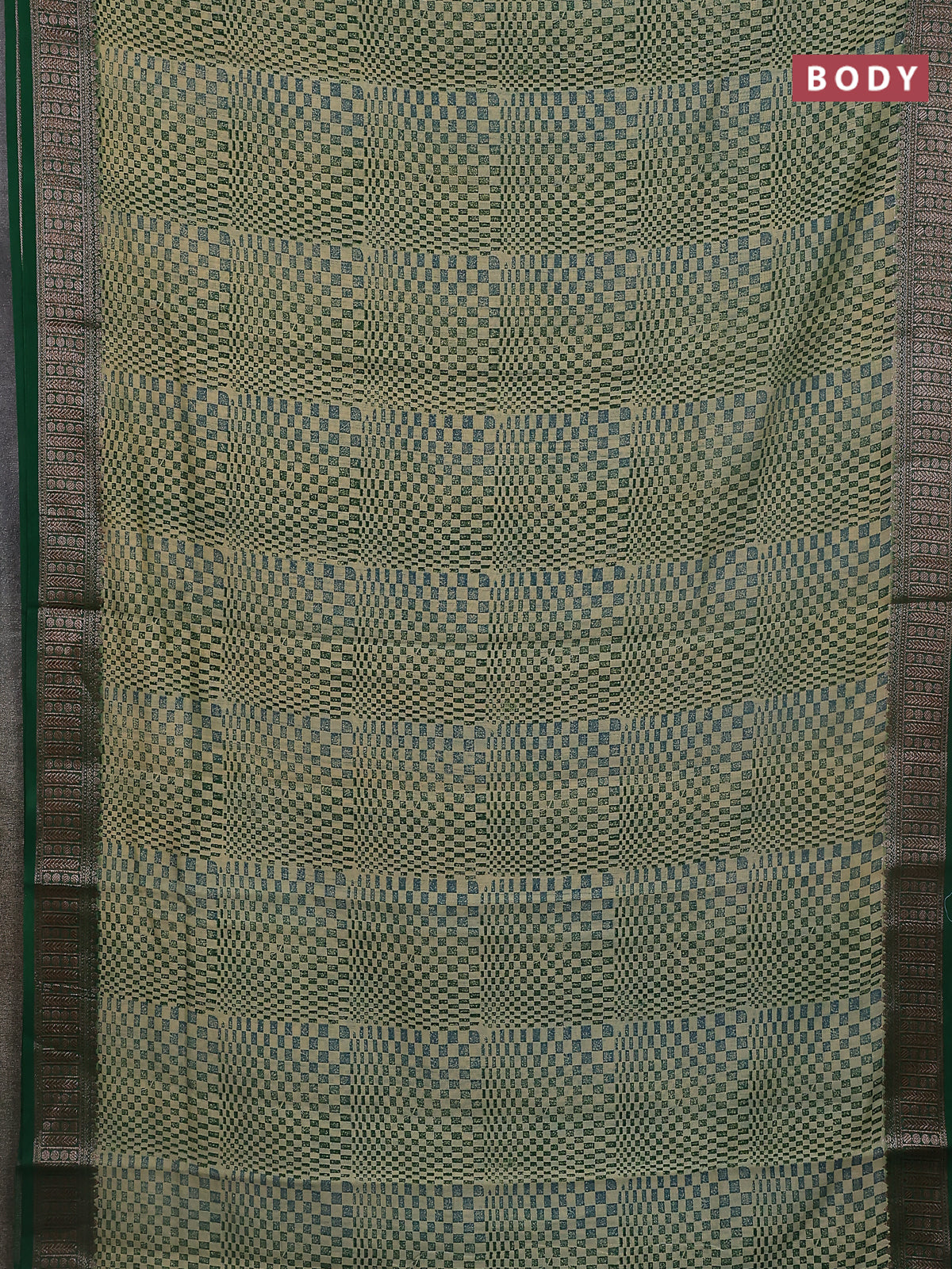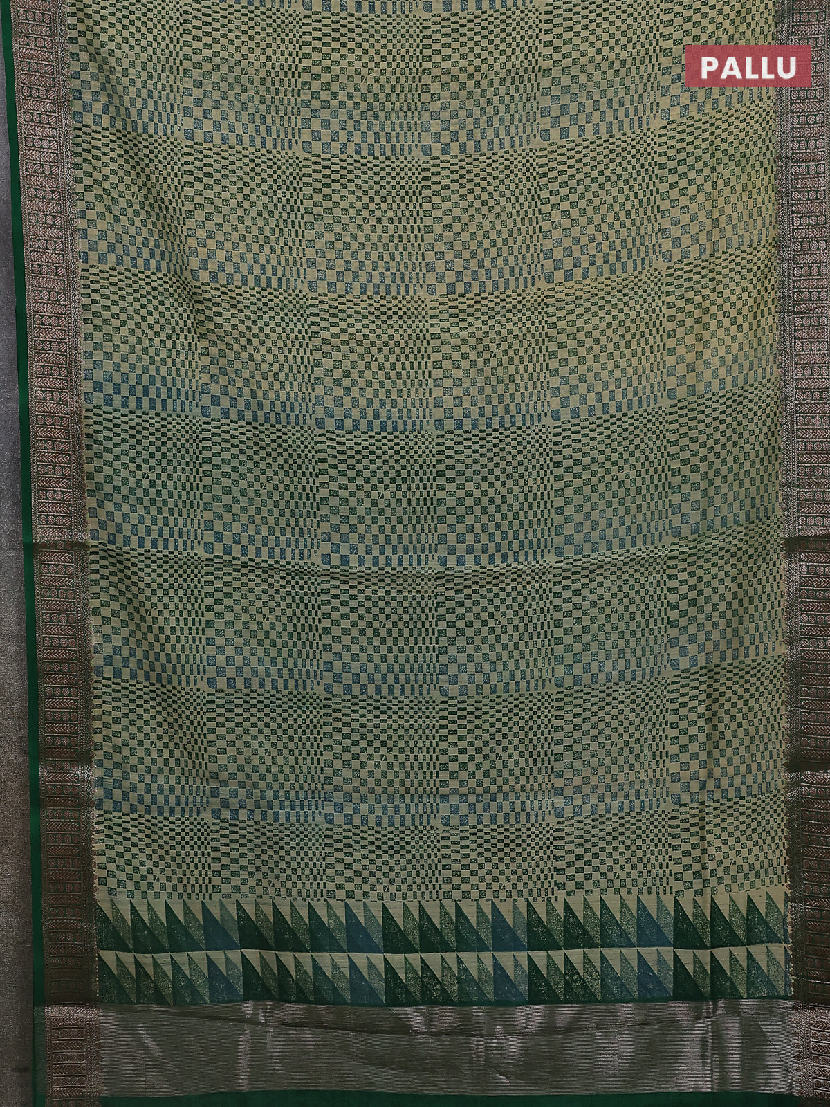 Chanderi silk cotton saree green with allover geometric prints and banarasi style border