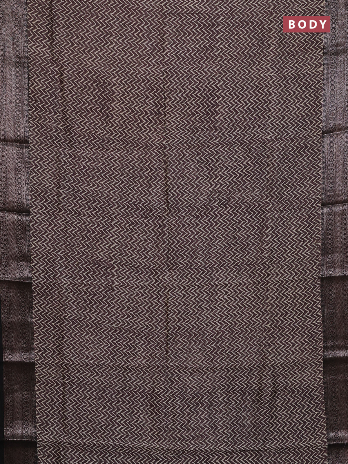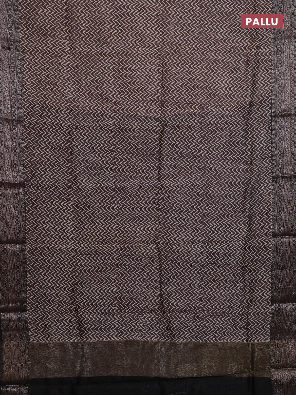 Chanderi silk cotton saree jamun shade and black with allover zig zag prints and banarasi style border