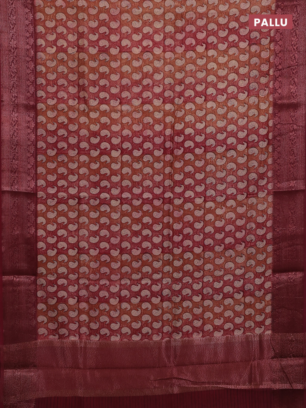 Chanderi silk cotton saree maroon with allover paisley prints and banarasi style border