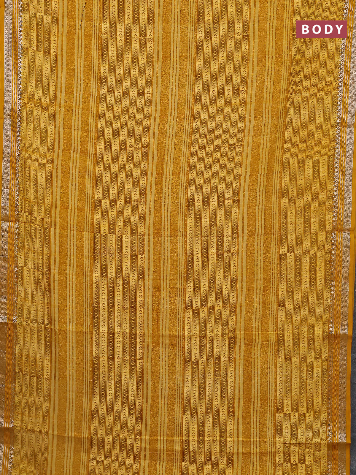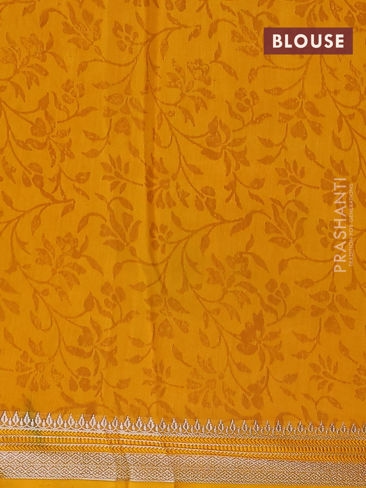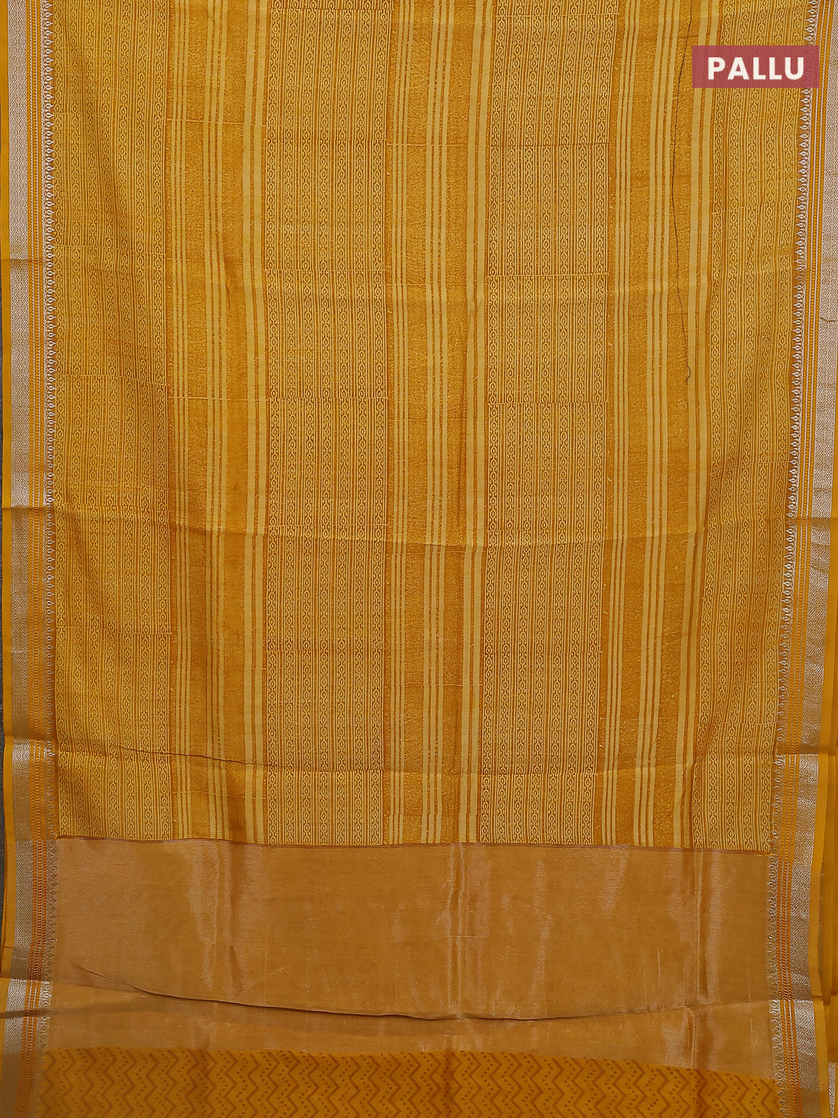 Chanderi silk cotton saree mustard yellow with allover prints and silver zari woven border