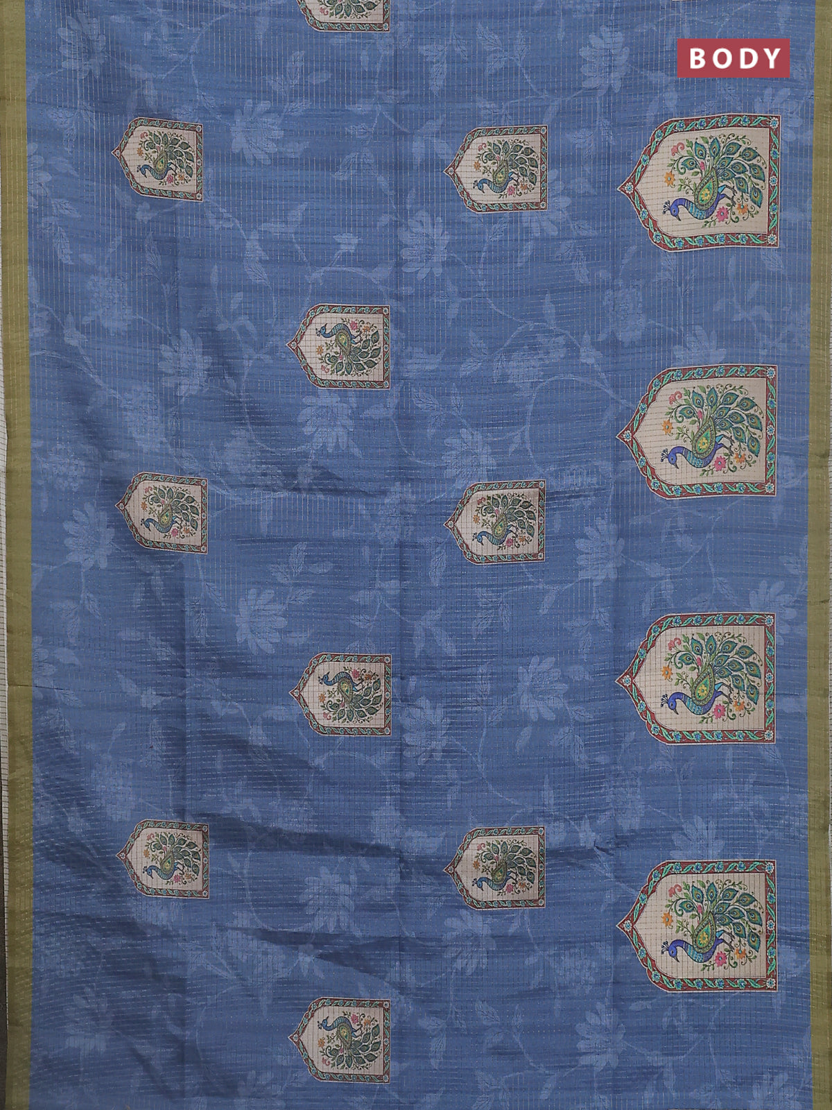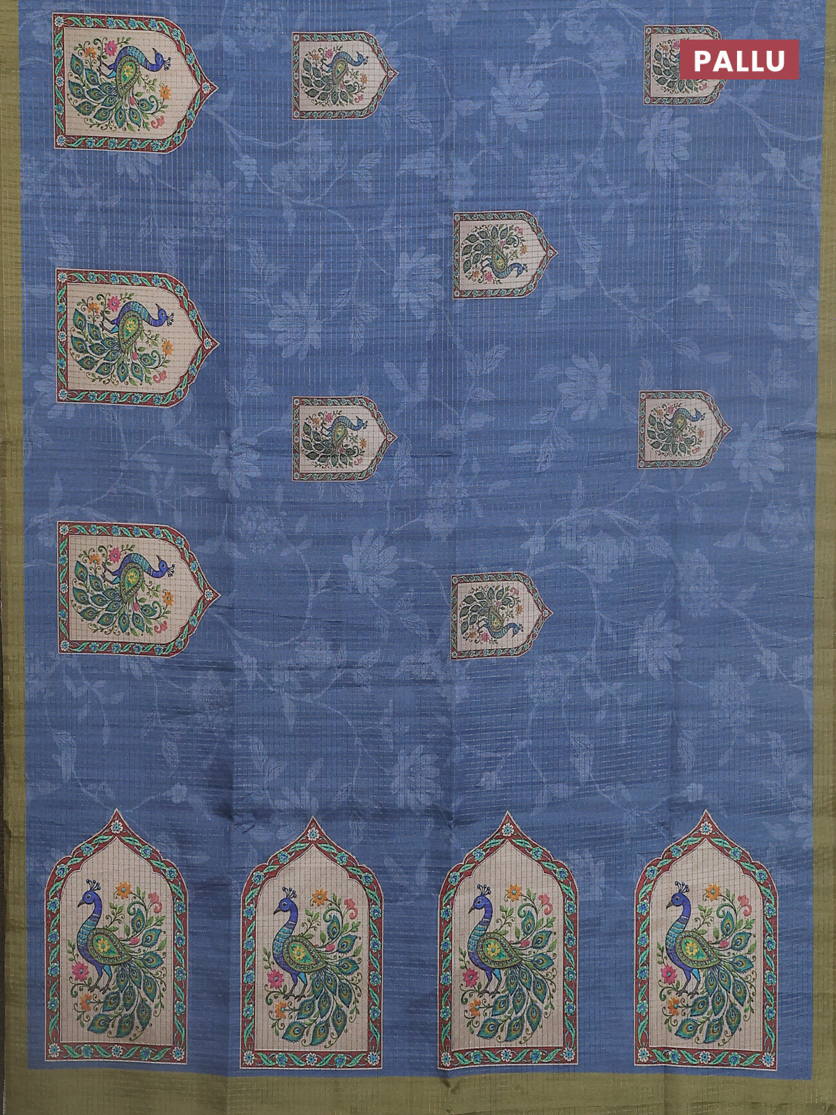 Chappa saree blue shade and mehendi green with allover zari checked pattern & digital prints and printed pallu