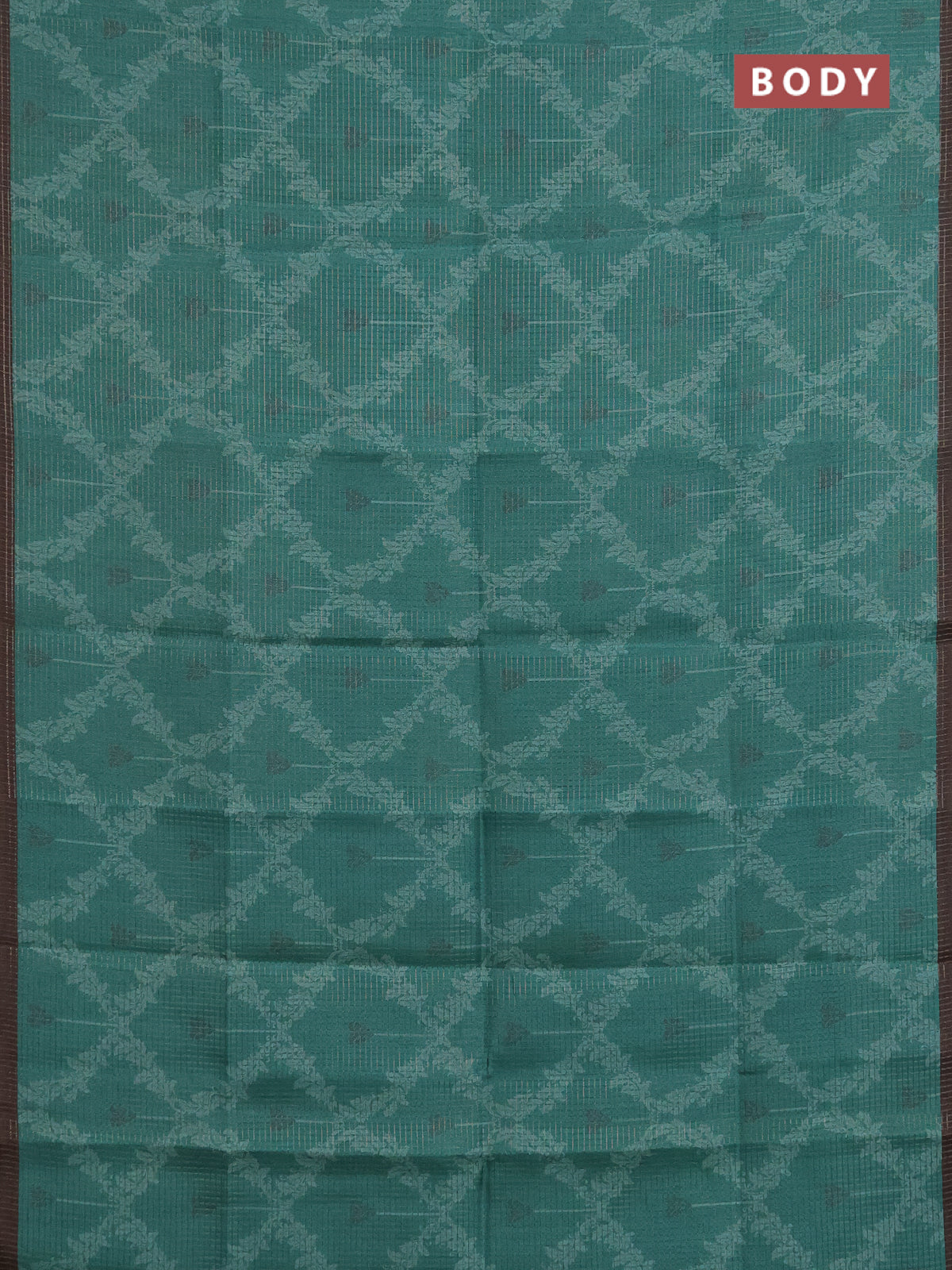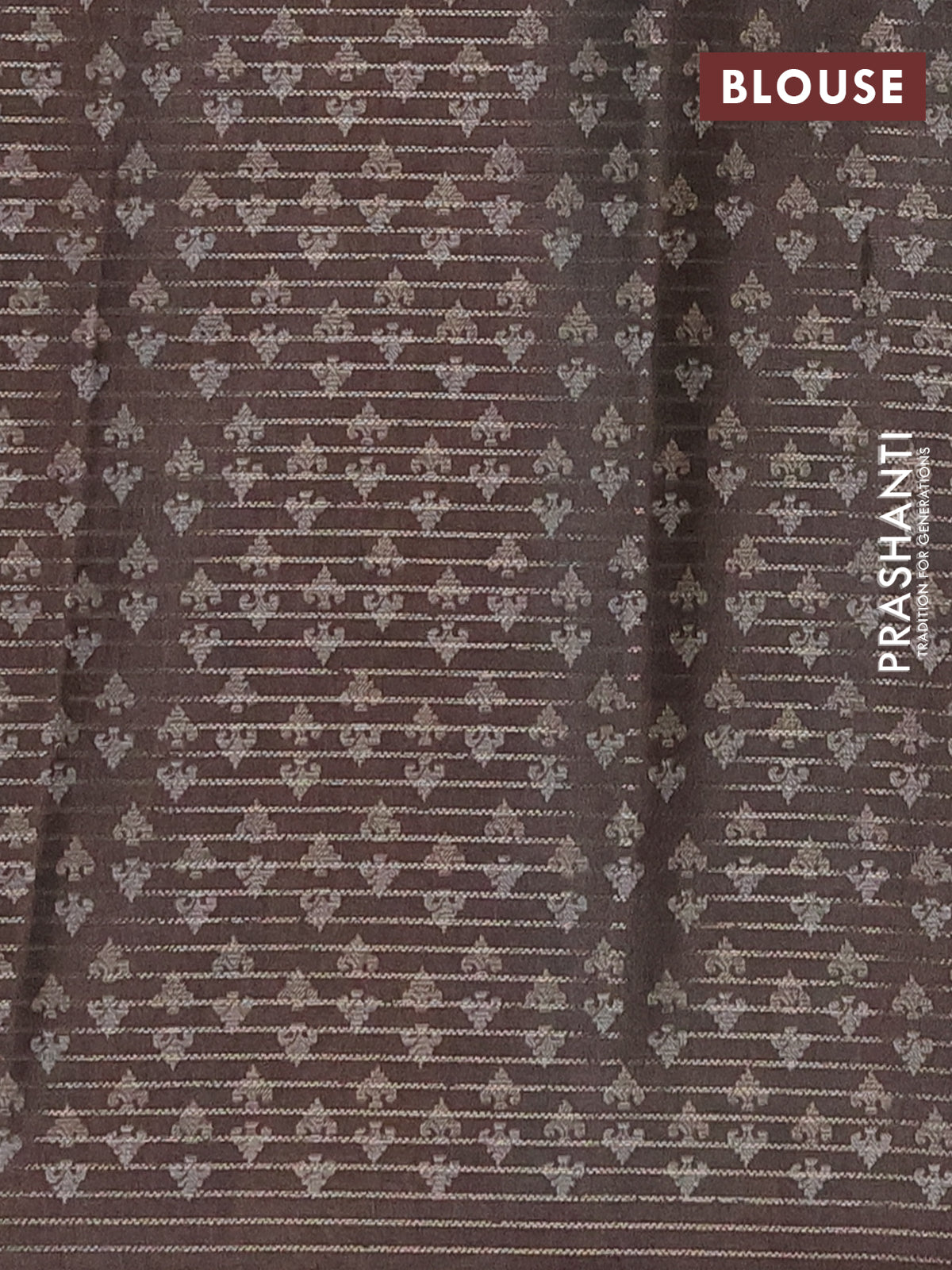 Chappa saree green and brown with allover small zari checked pattern & prints and piping border