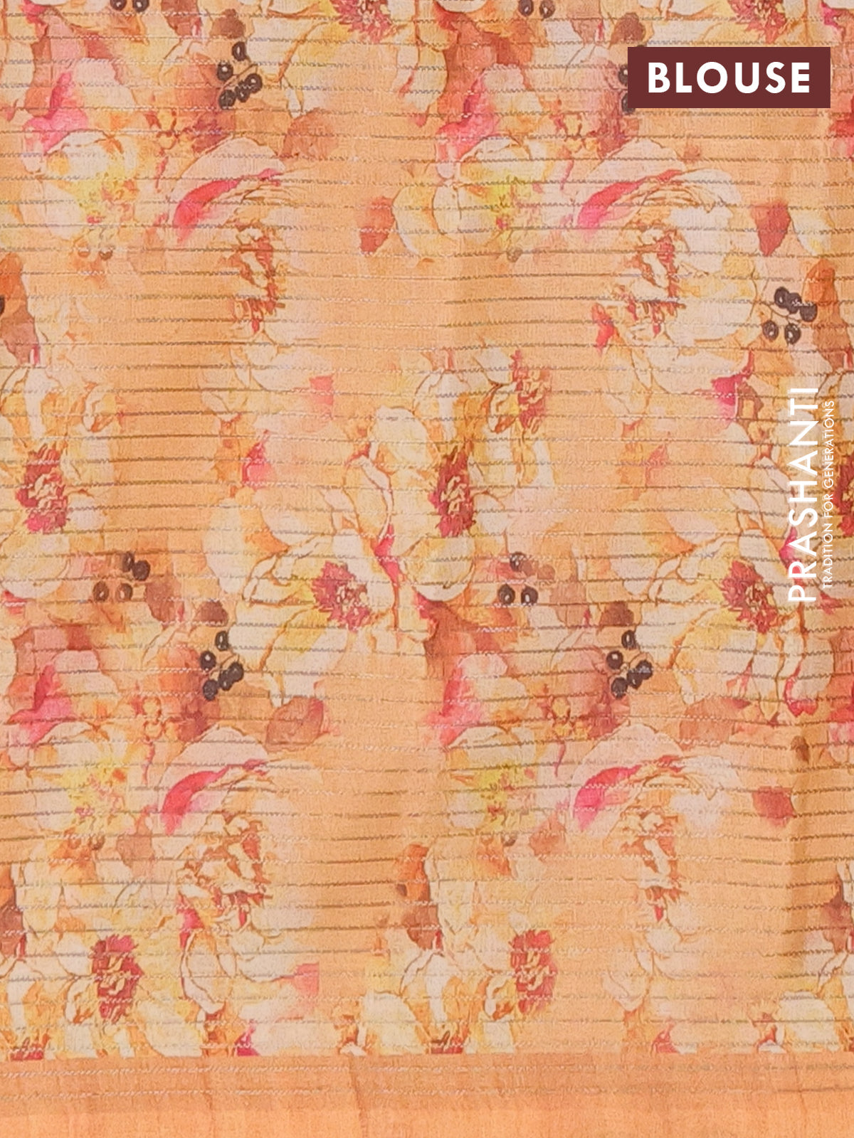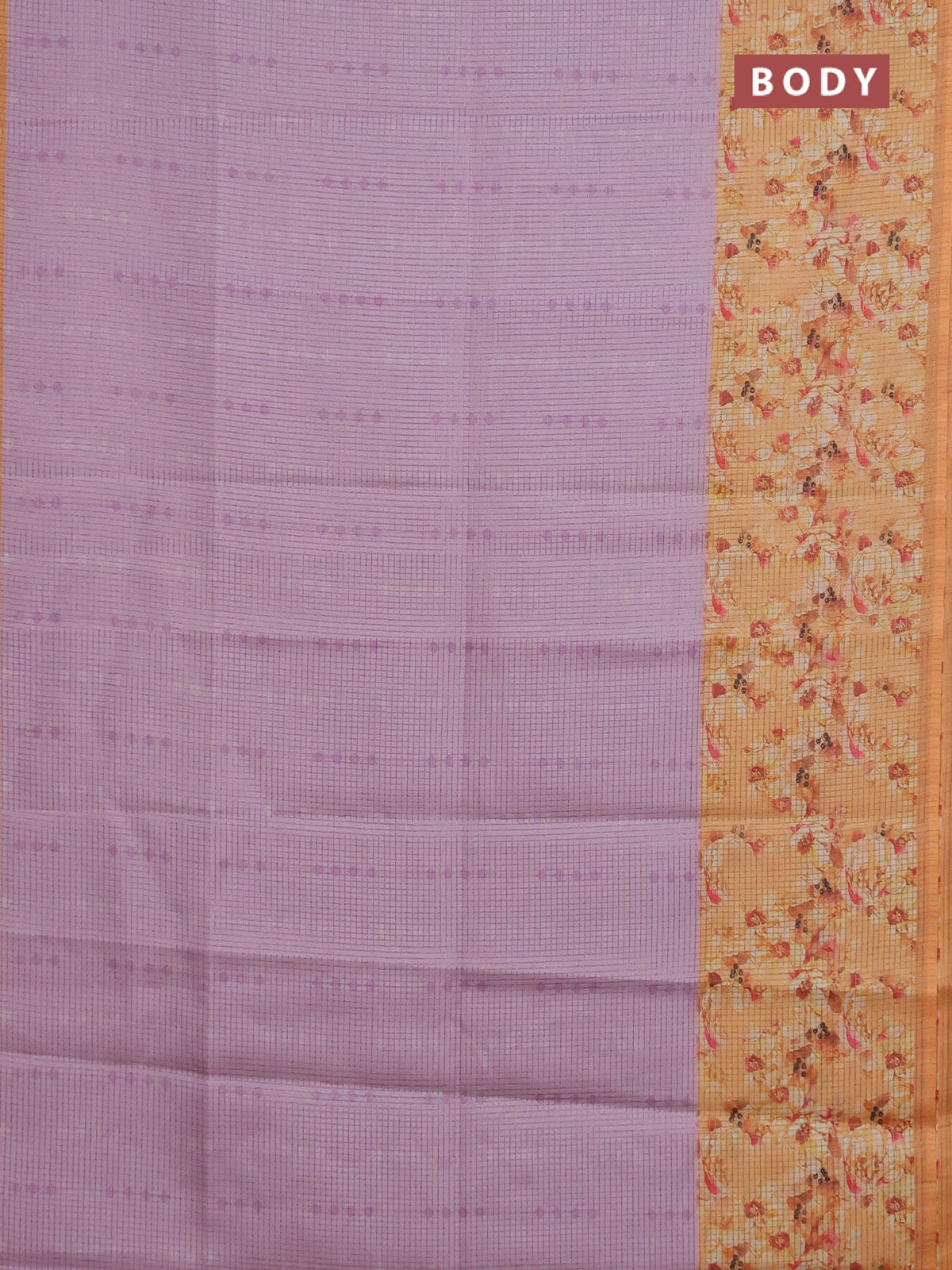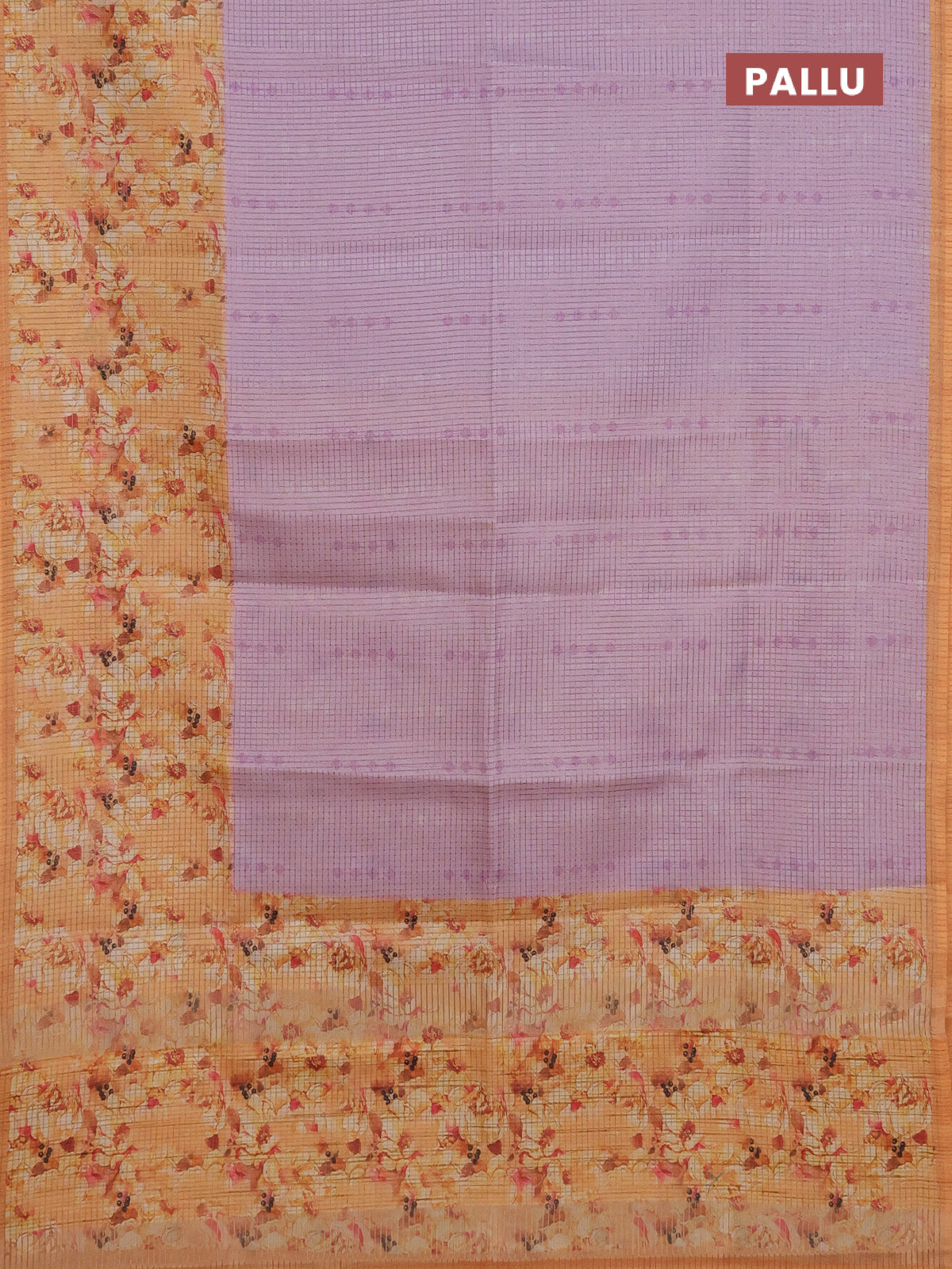Chappa saree lavender and pale orange with allover small zari checked pattern and floral digital printed pallu