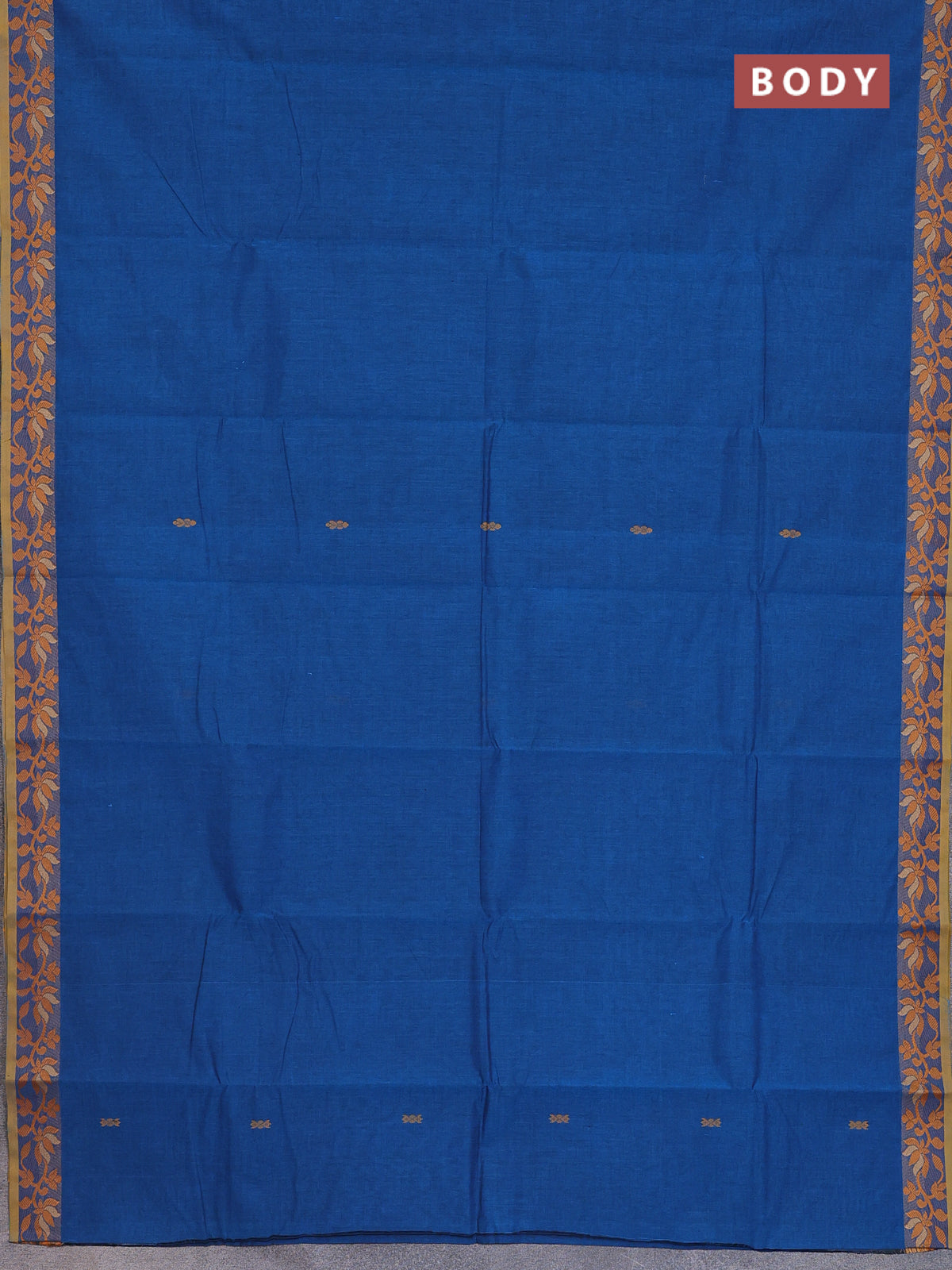 Chettinad cotton saree cs blue and yellow with thread woven buttas and floral design border