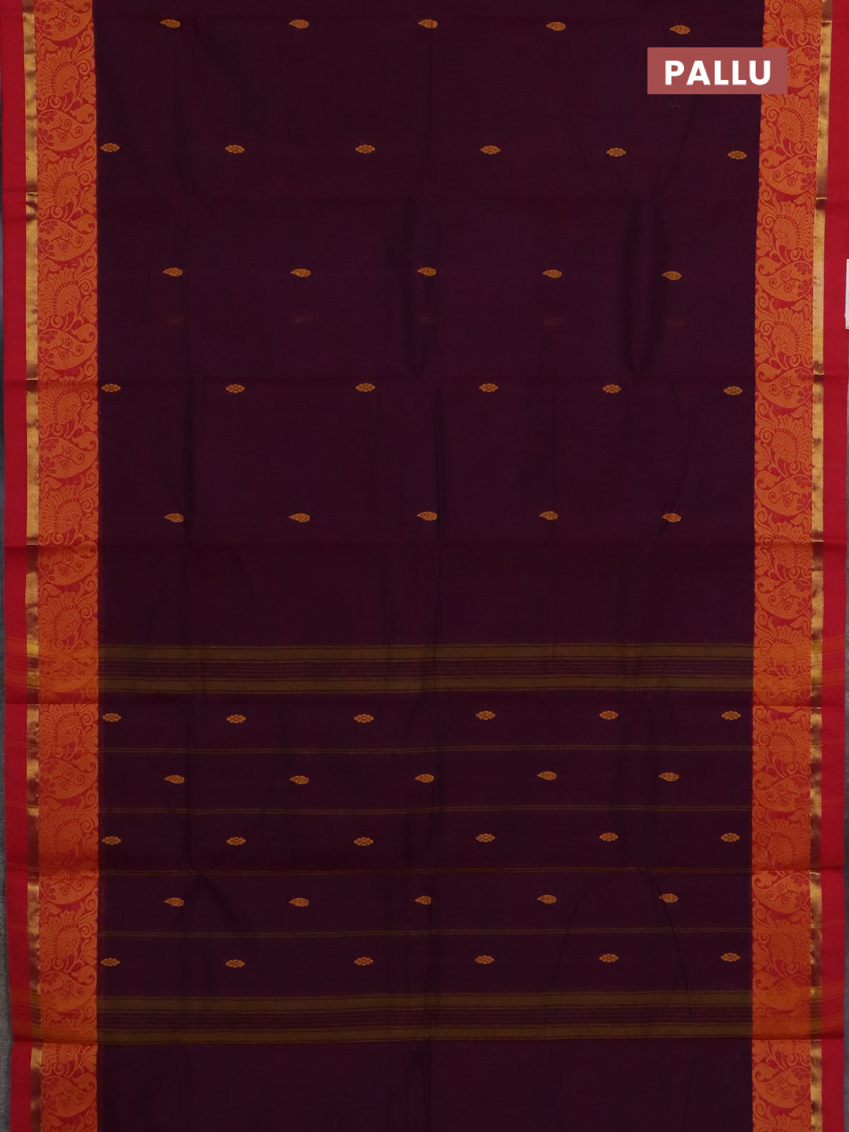 Chettinad cotton saree dark magenta pink and red with thread woven buttas and thread woven border