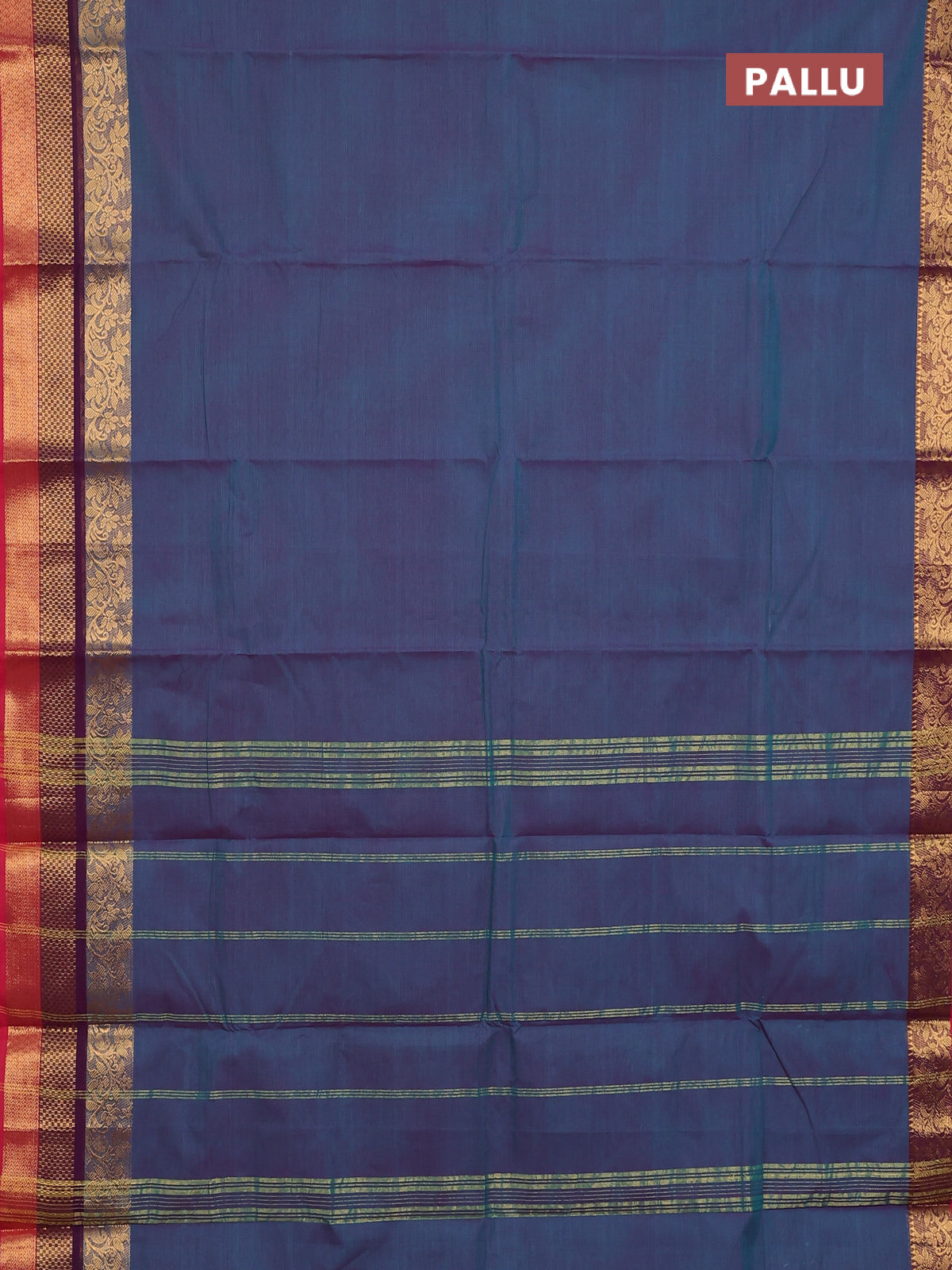 Chettinad cotton saree dual shade of peacock blue and red with plain body and long zari woven border