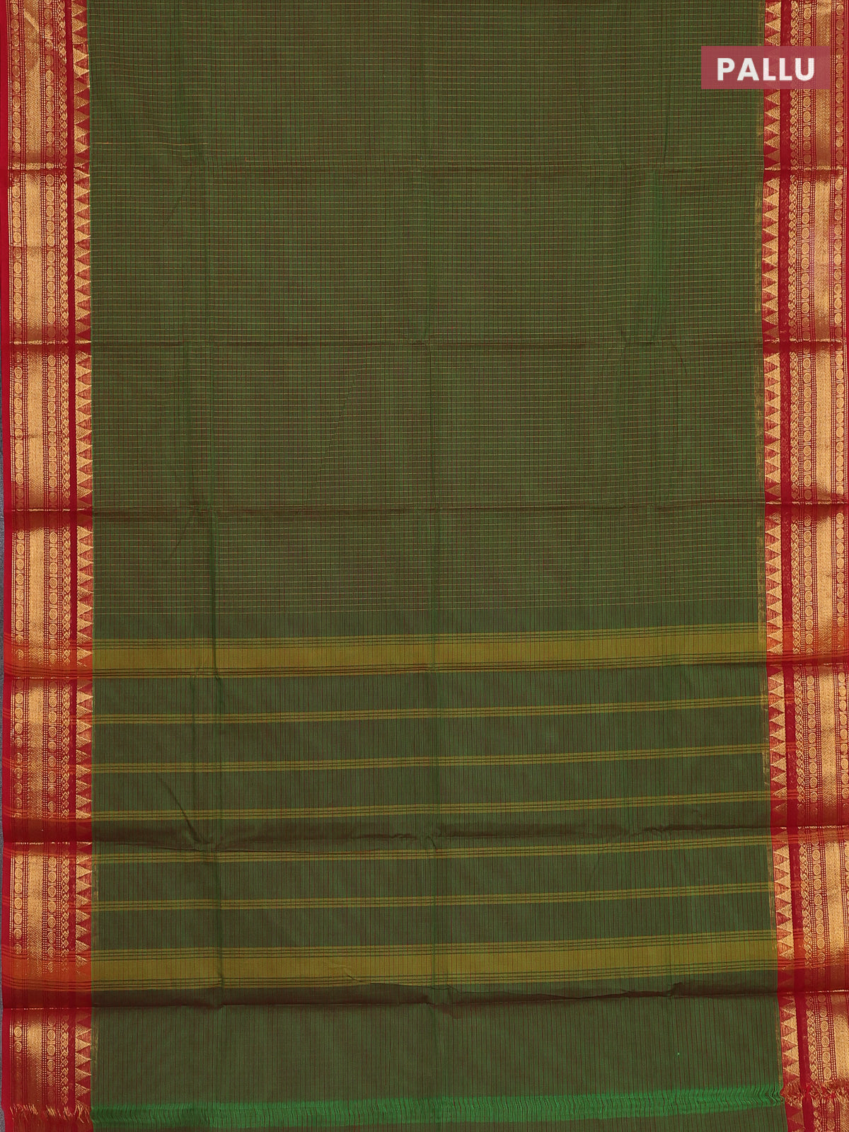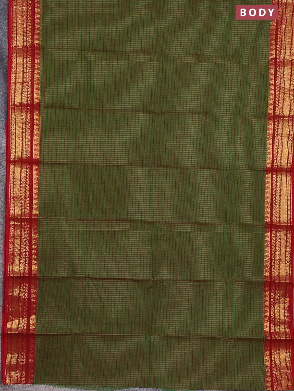 Chettinad cotton saree green and maroon with allover checked pattern and temple disign zari woven border