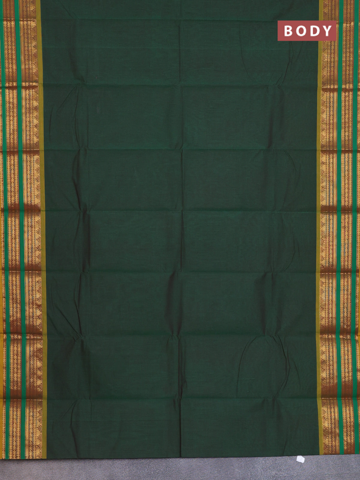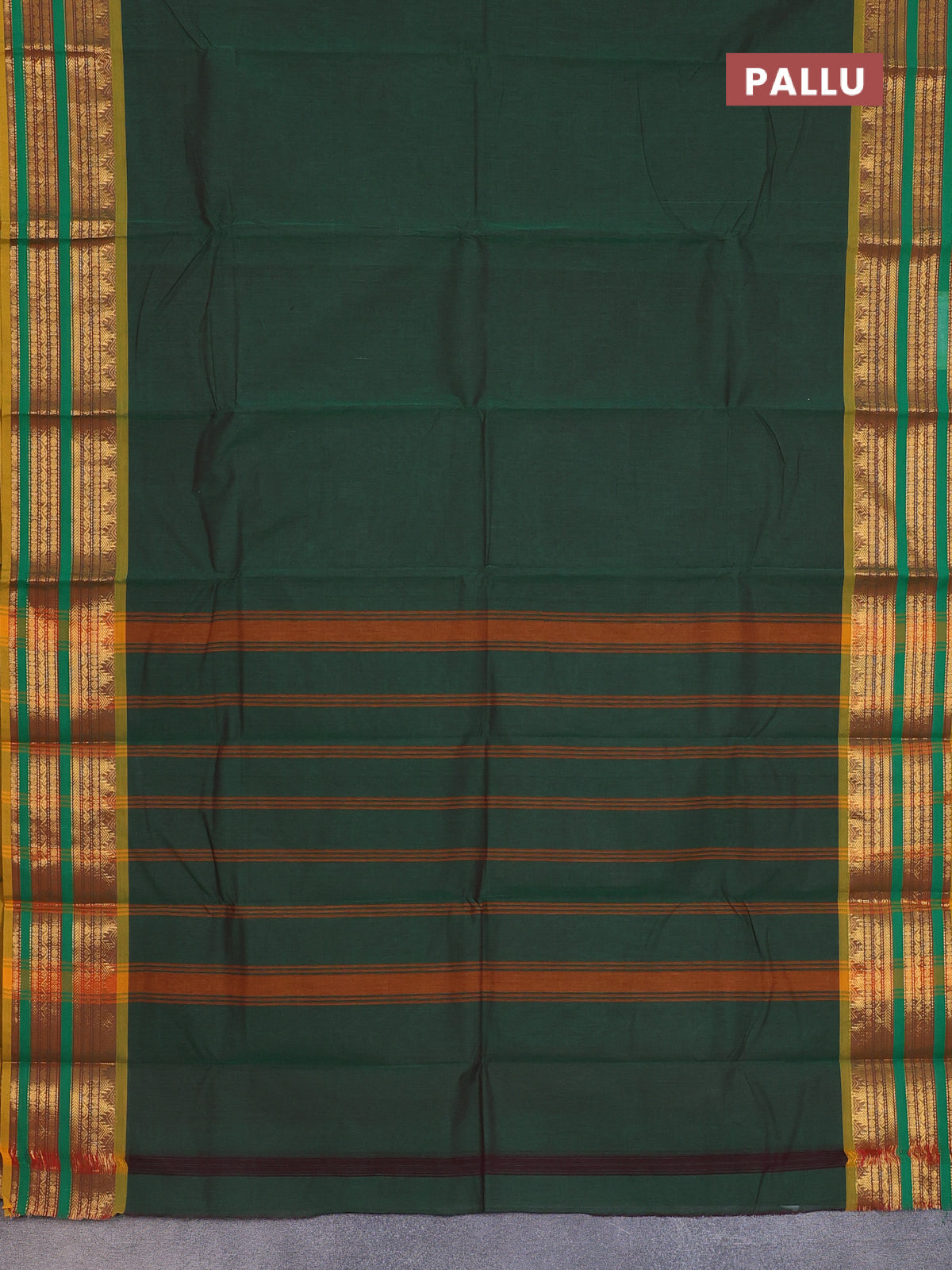 Chettinad cotton saree green and mustard yellow with thread woven buttas and zari woven border