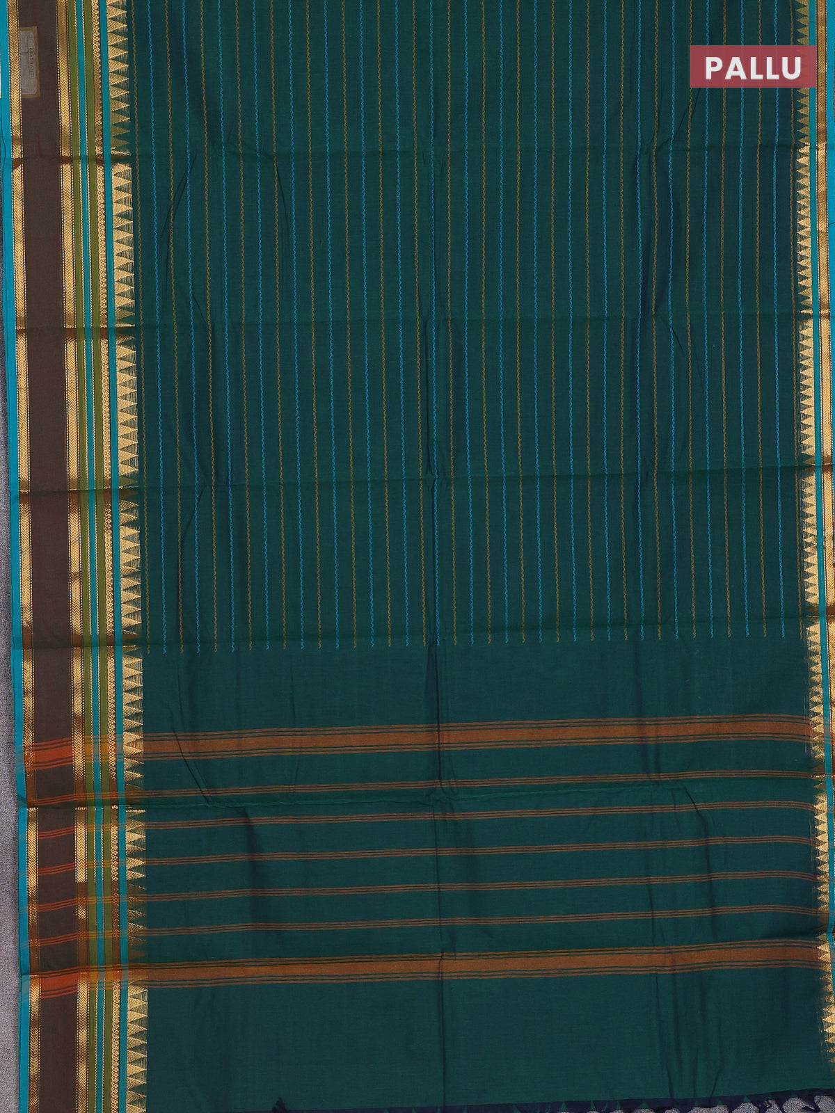 Chettinad cotton saree green and teal blue with allover thread woven stripes pattern and zari woven border