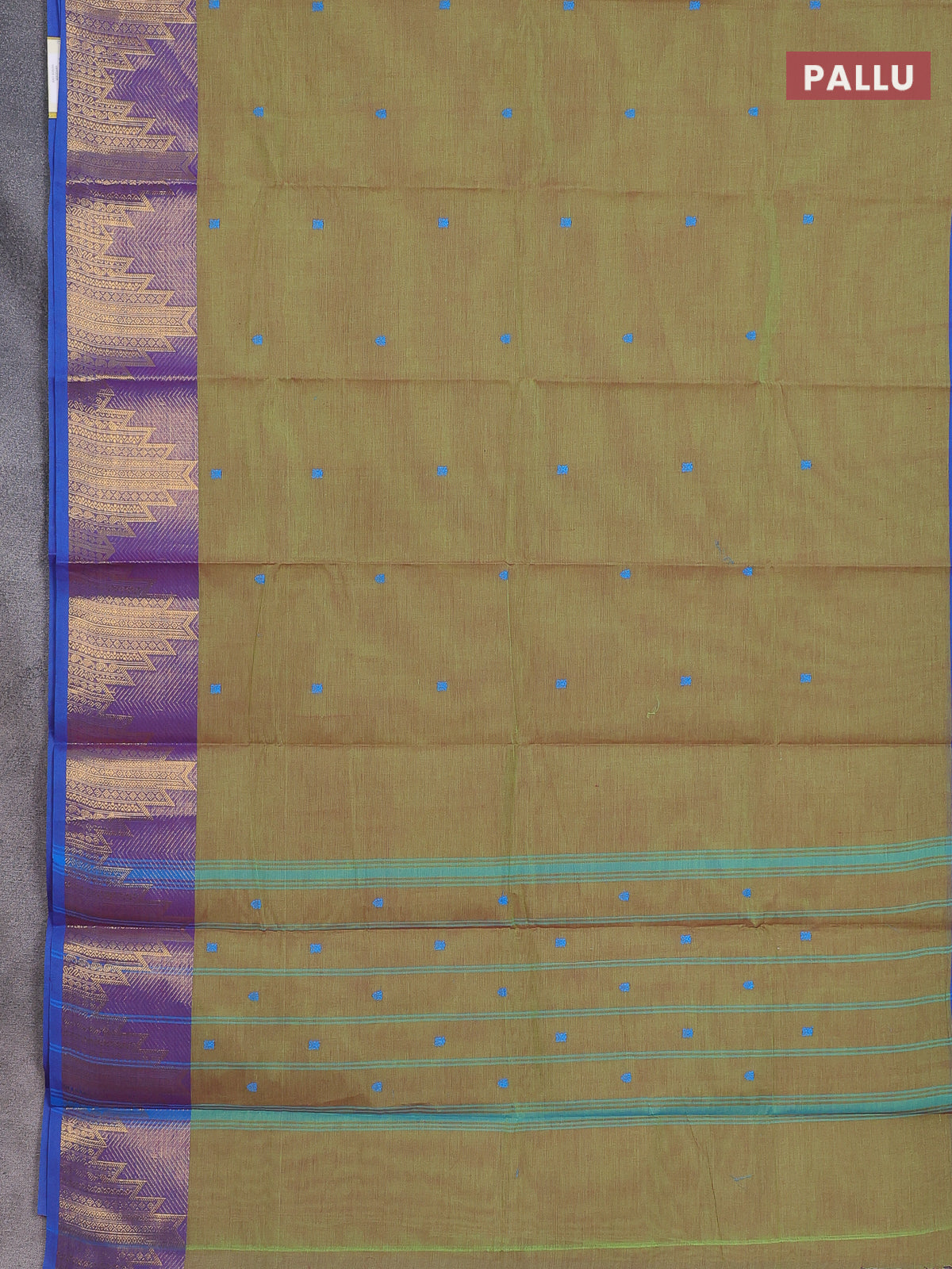 Chettinad cotton saree light green and cs blue with thread woven buttas and temple design zari border