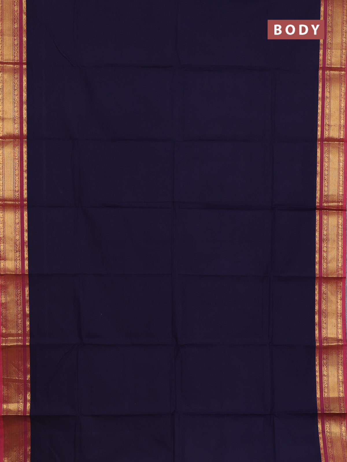Chettinad cotton saree navy blue and pink with plain body and zari woven border