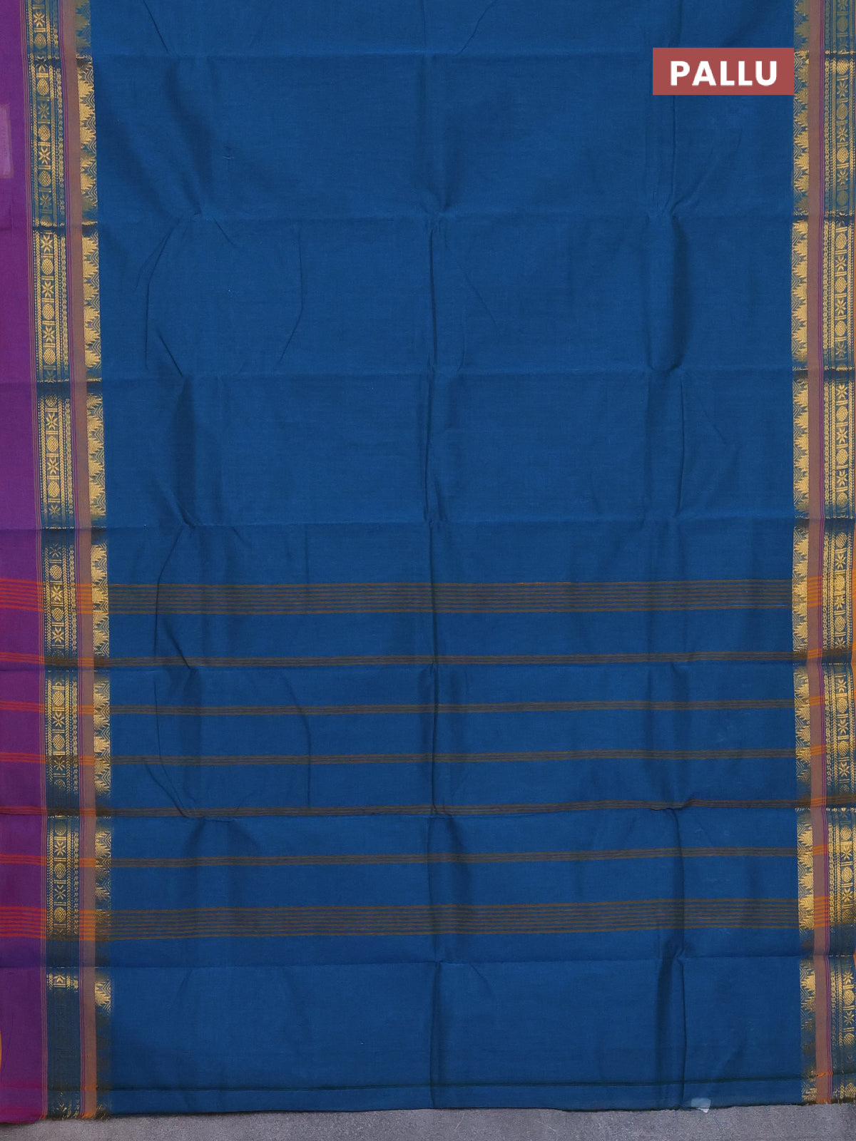 Chettinad cotton saree peacock blue and violet with thread woven buttas and ganga jamuna border