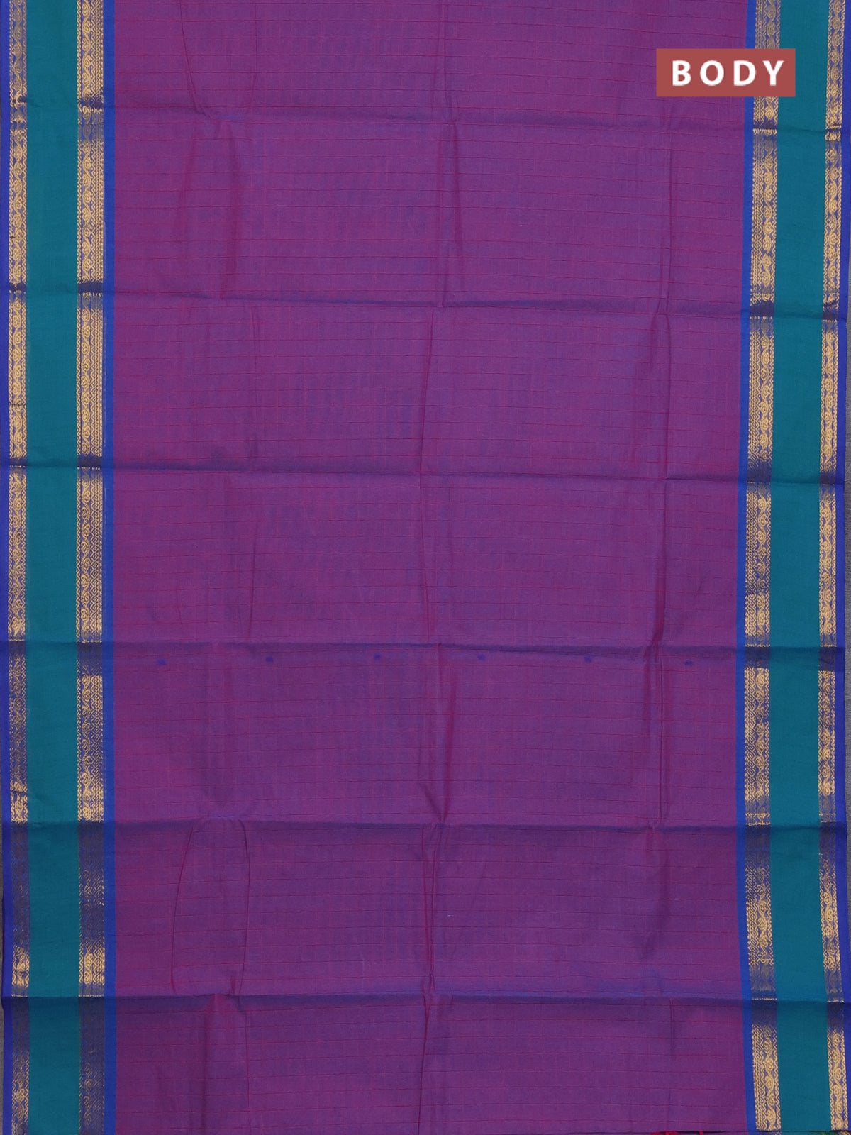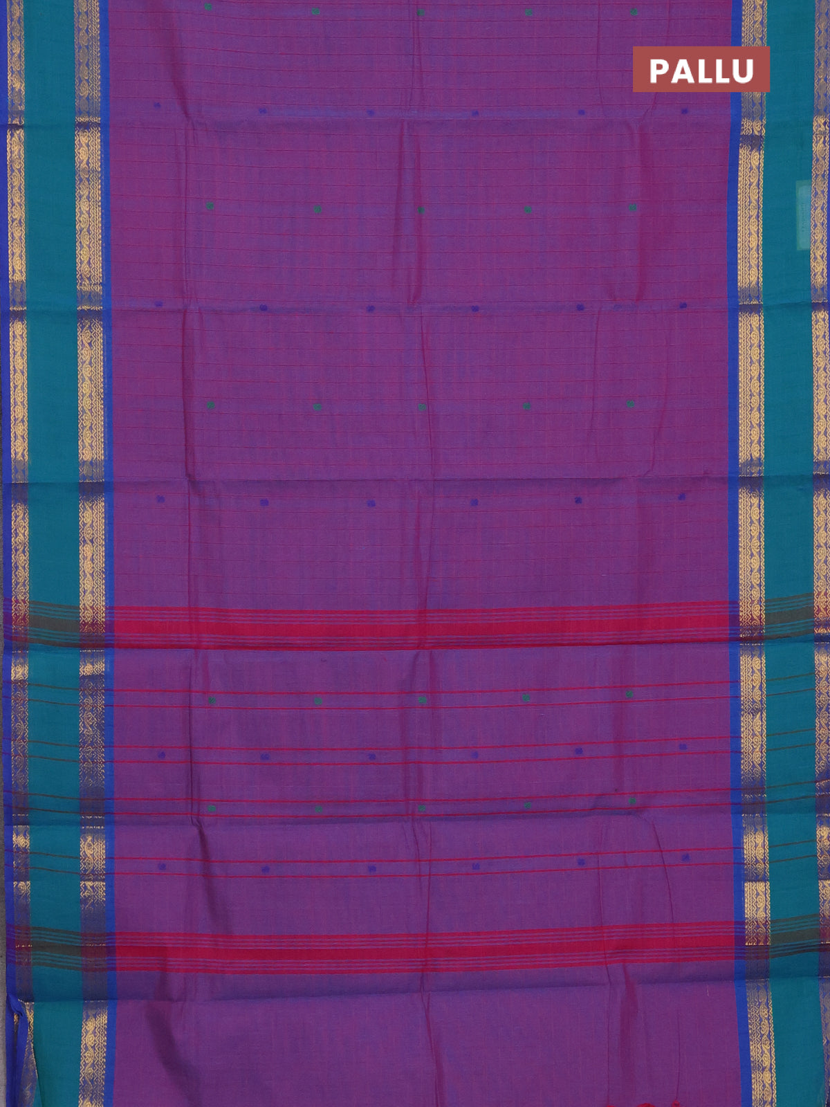 Chettinad cotton saree purple and teal green with allover checked pattern and rattapet zari woven border