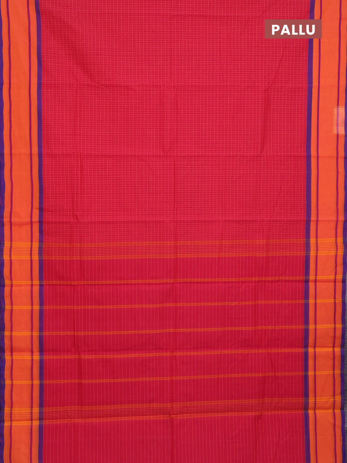 Chettinad cotton saree red and purple with allover checked pattern and simple border