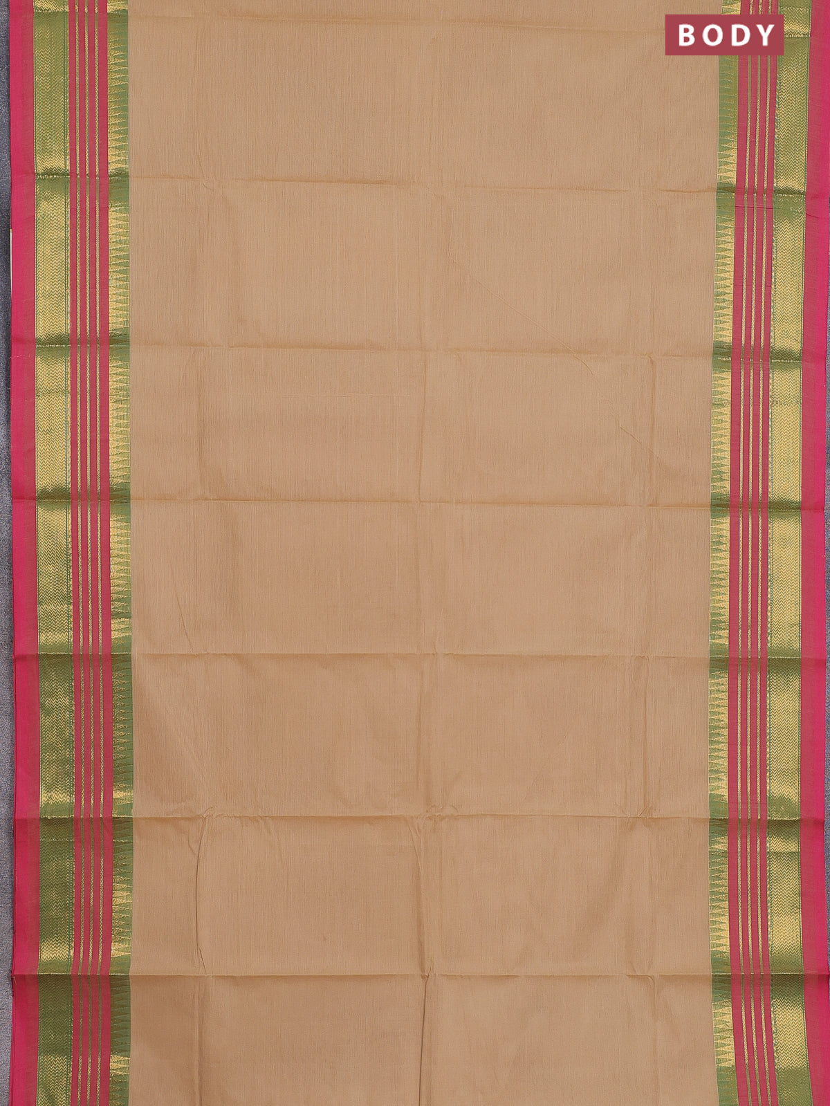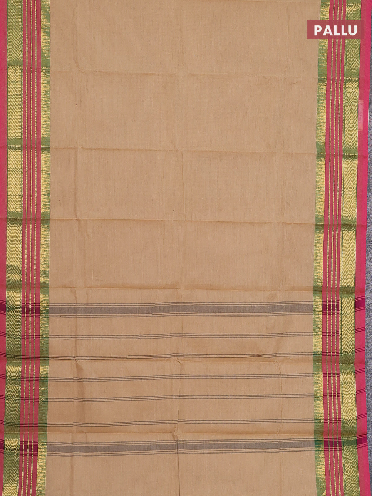 Chettinad cotton saree sandal and pink with plain body and zari woven border
