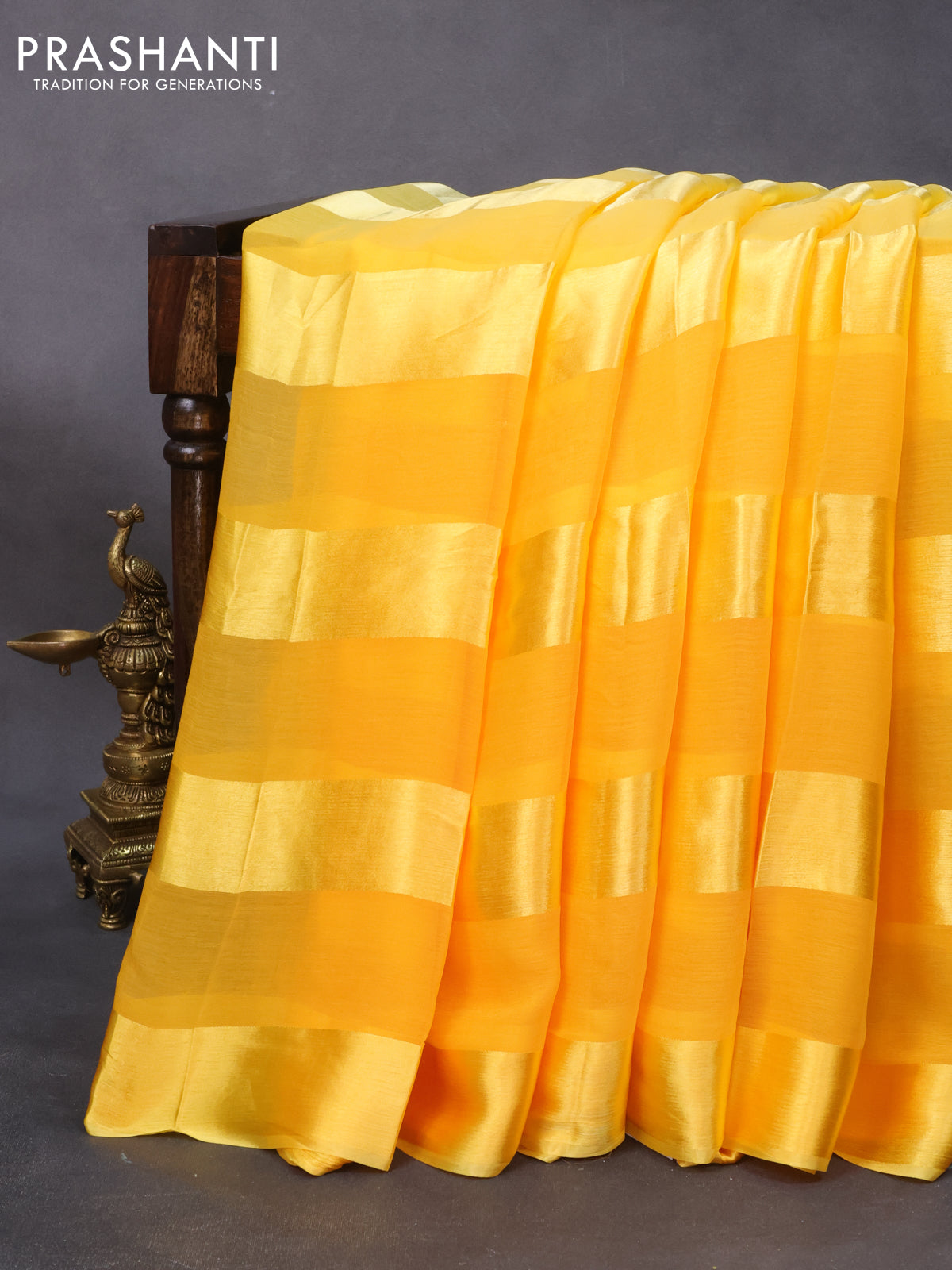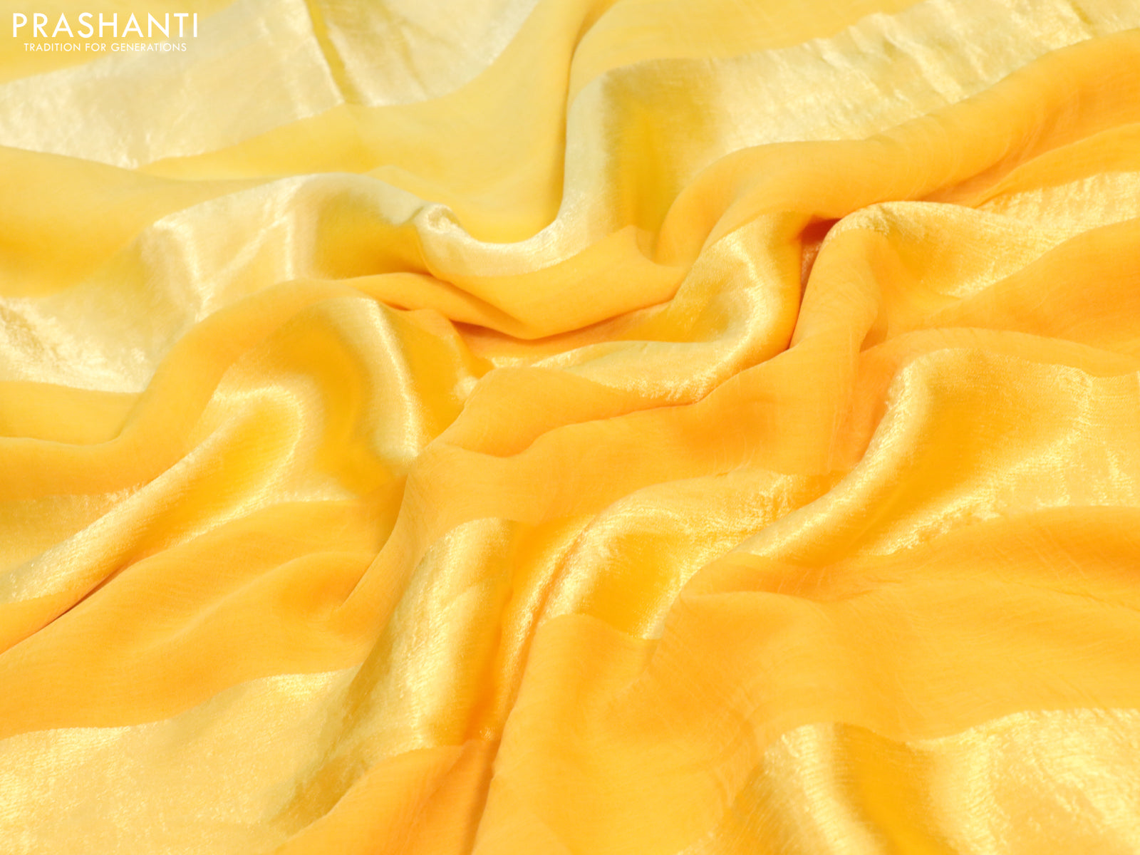 Chiffon silk saree mango yellow with satin finished in borderless style & embroidered readymade blouse