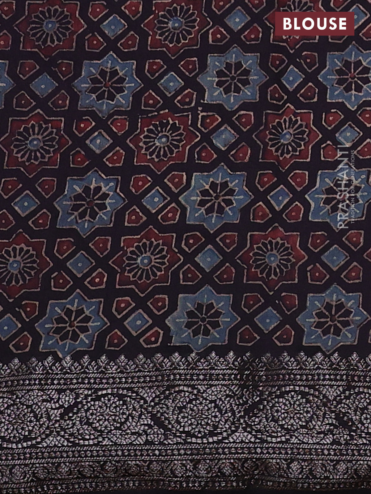 Chiniya silk saree magenta pink and black with plain body and woven border