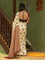 Off-white cotton viscose forms the base for a captivating print, showcasing illustrations of women engaged in various Onam festivities. The artwork brings the spirit of the harvest festival to life, while a classic gold zari border frames the design with a touch of elegance.