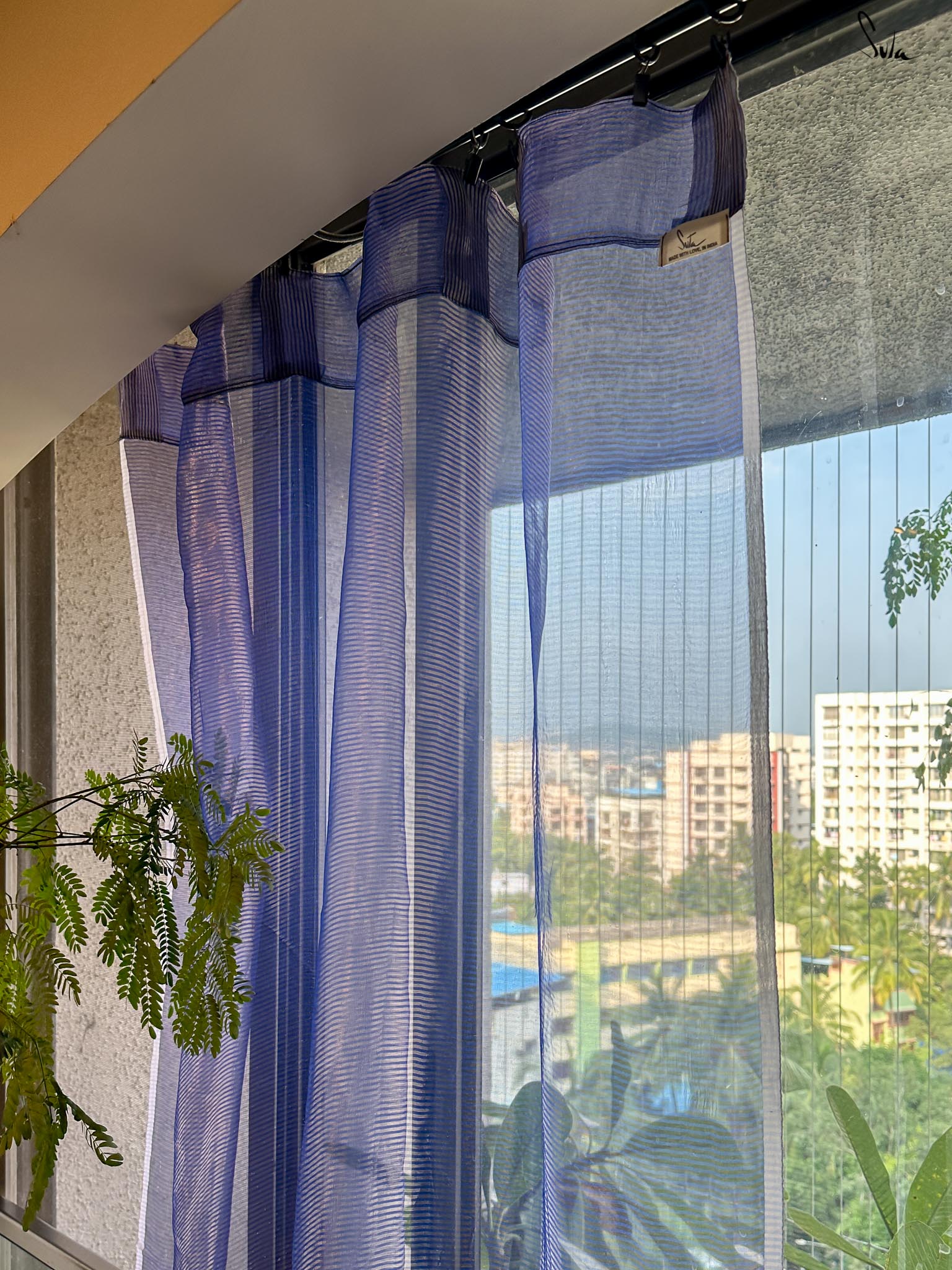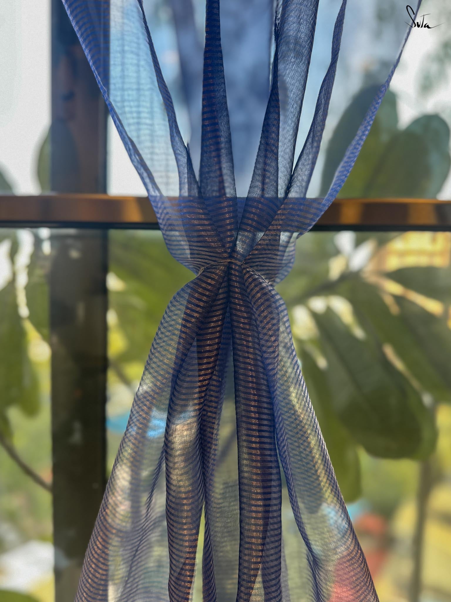 Ride the currents of style with Cobalt Wave, curtains crafted from exquisite organza silk embellished with shimmering zari in vibrant blue reflects the calming essence of ocean waves, promoting tranquility and creativity in your living space. Ideal for those looking to make a bold statement while maintaining a sense of peace, the curtains are your gateway to a refreshing and stylish environment.