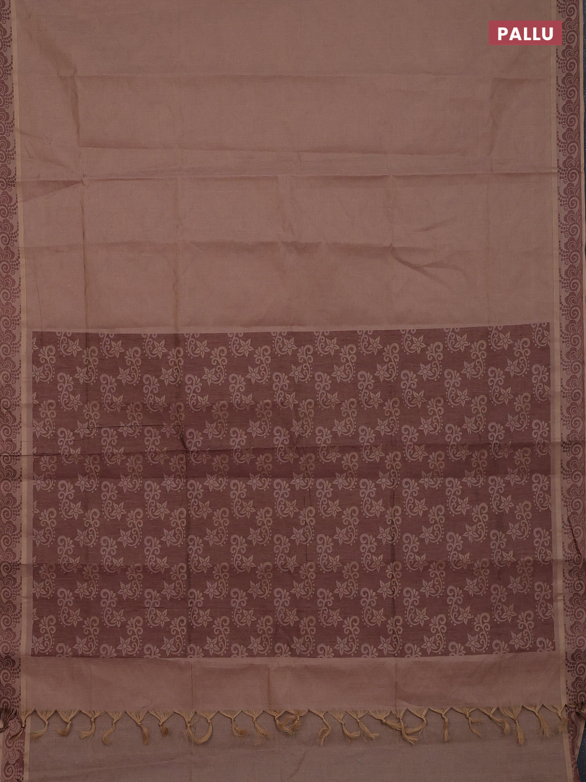 Coimbatore cotton saree pastel brown and coffee brown with allover self emboss and thread woven border