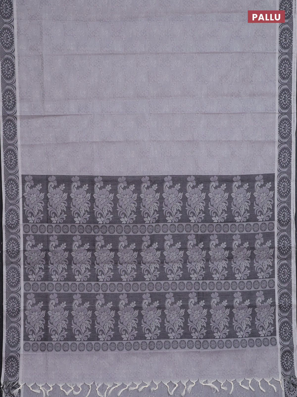 Coimbatore cotton saree pastel grey and black with allover self emboss and thread woven border