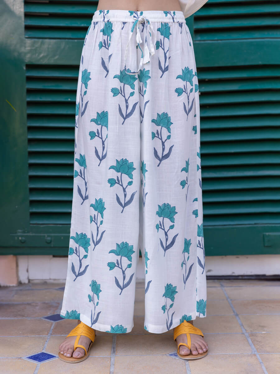Dancing Lotus Hand Block Printed Palazzo