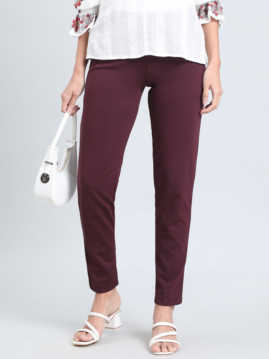 Dark Wine Ponte Smart Fit Kurti Pant