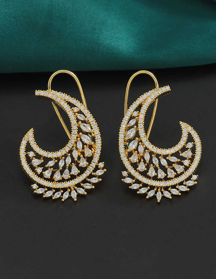 A radiant Gold-toned necklace and earring set adorned with sparkling Bud and floral motifs, perfectly blending elegance and charm for your special occasions.