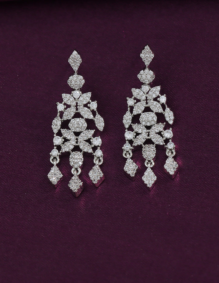 This Designer Zirconia Elegance Necklace Set features sparkling white stones enhanced by a durable rhodium polish. Its refined craftsmanship adds a sophisticated glow to any ensemble.
