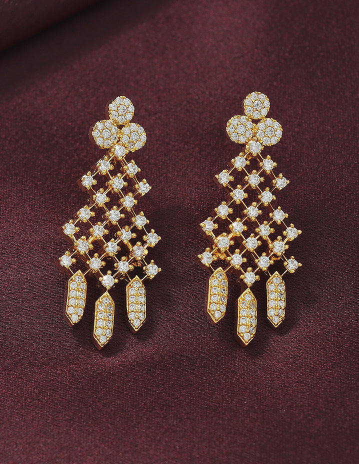 Elevate your style with this Designer Zirconia Elegance Necklace Set, featuring radiant white stones and a refined gold polish for timeless sophistication. Perfectly crafted to add a luxurious touch to any ensemble.