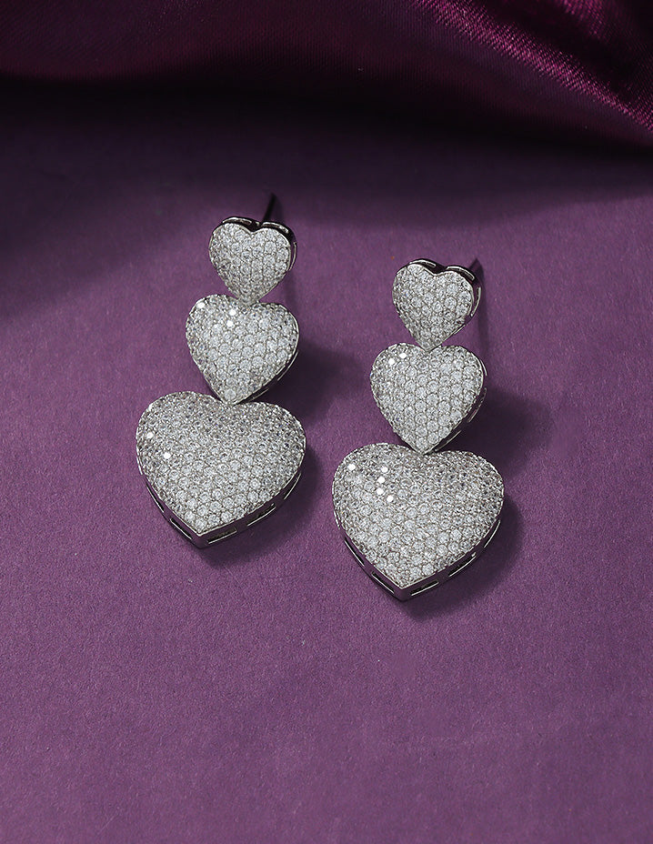 Add a touch of glamour to your look with these dazzling triple-heart earrings, beautifully encrusted with shimmering stones in a golden finish — perfect for date nights or festive occasions!