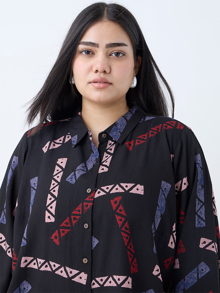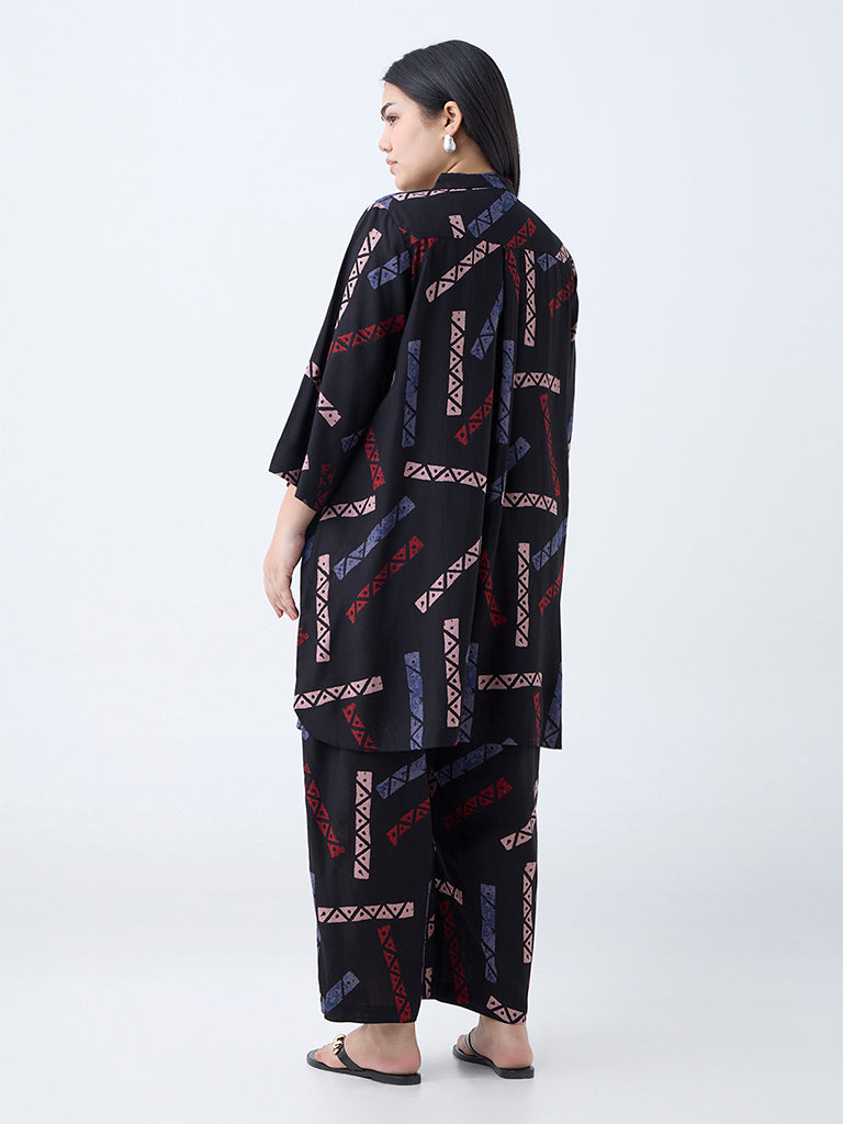 Add a contemporary edge to your ethnic line-up with this black kurta from Diza. Defined with abstract prints, it’s milled from an ultra-lightweight fabric and finished with a collar, button placket, and three-quarter sleeves. A slip pocket adds a touch of everyday practicality.