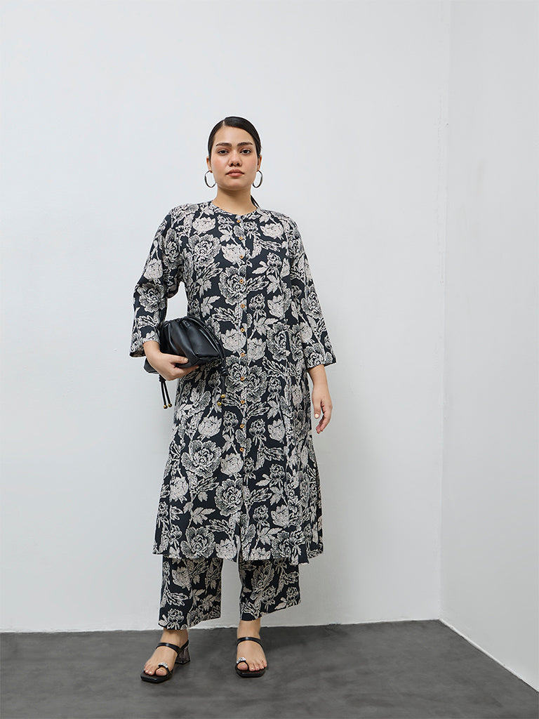 Style your ethnic edits with ease in these black Diza pants, adorned with understated botanical motifs. Made from a breathable fabric, they feature an elasticated waistband and side pockets, delivering a relaxed fit that works seamlessly from morning errands to evening gatherings.