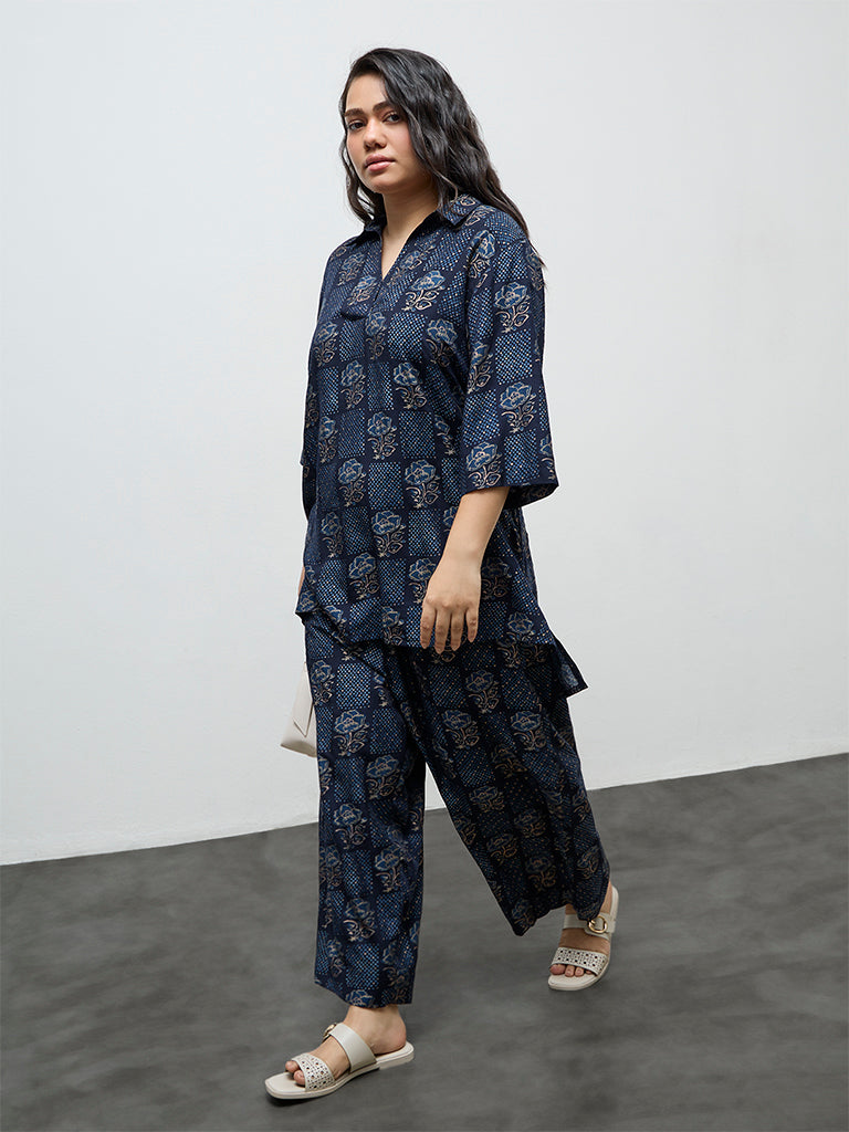 Diza Dark Blue Floral Printed High-Low Tunic