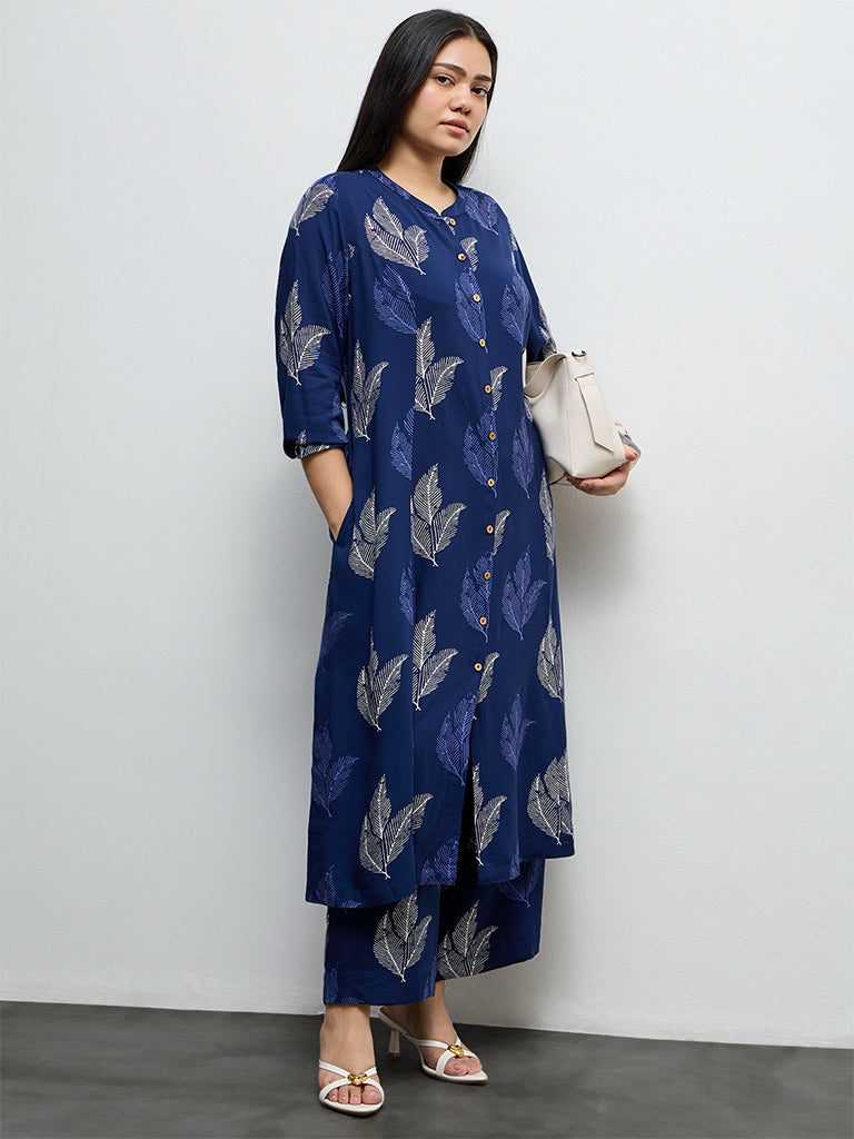 Diza Indigo Foliage Printed A-Line Kurta
