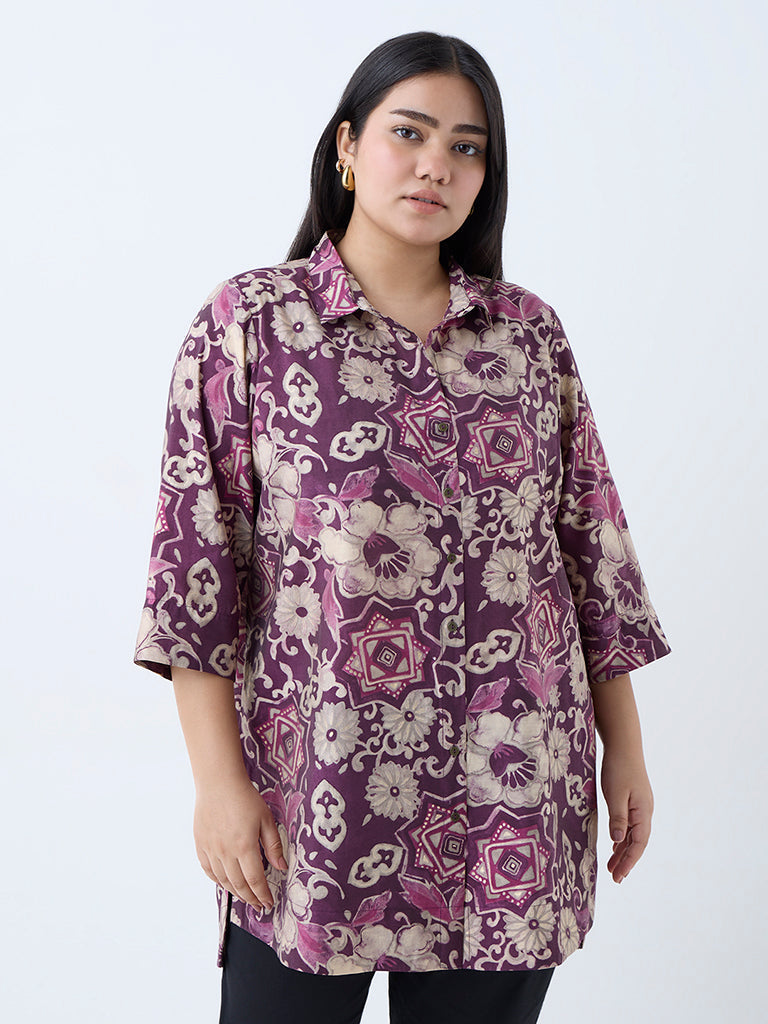 Refine your ethnic style with this plum tunic from Diza. Featuring floral prints all over, it is styled with a collar, a buttoned placket and three-quarter sleeves. The lightweight fabric ensures breathable comfort for all-day wear.